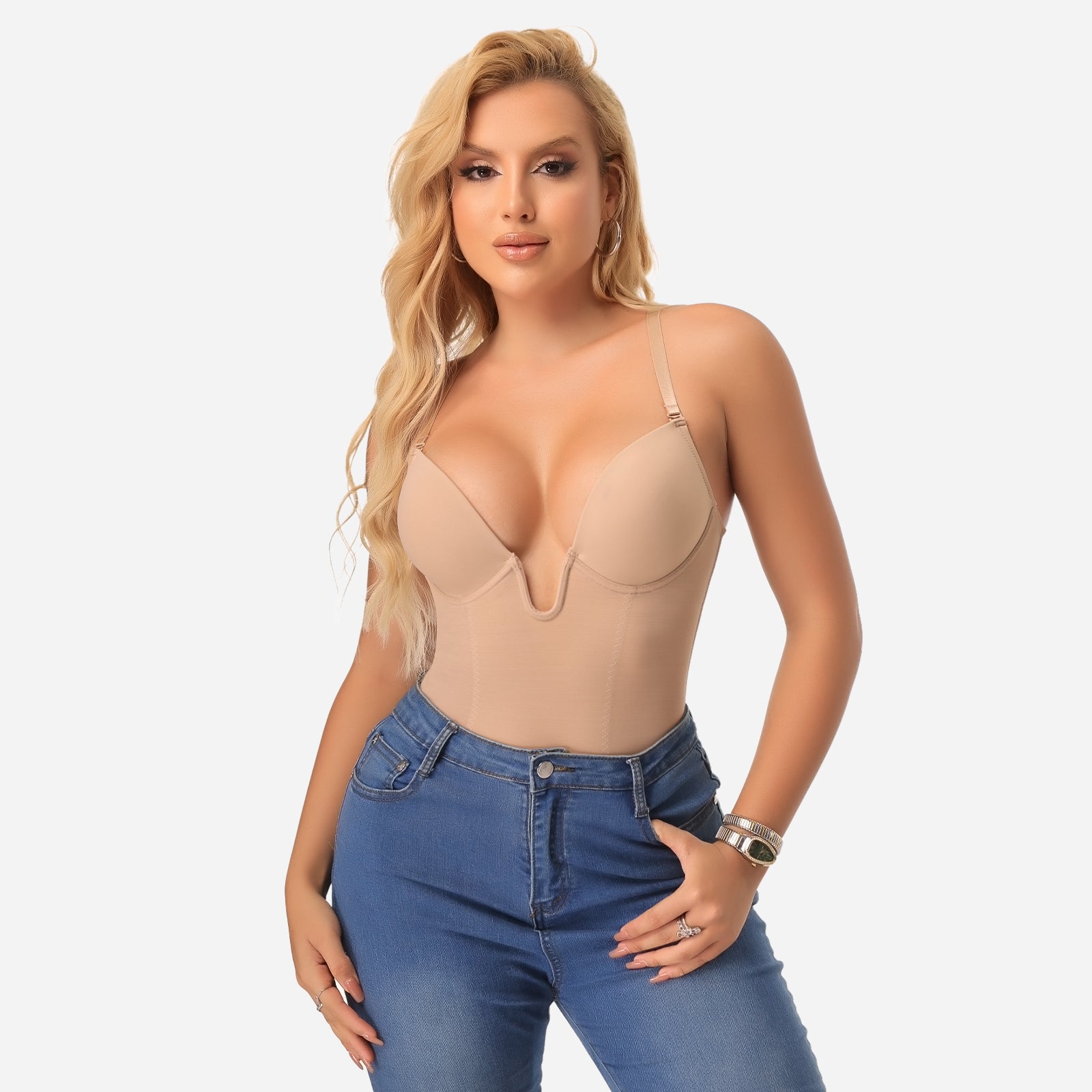 - U Plunge Design: Stylish deep U-plunge neckline and backless cut, ideal for low-cut dresses and backless outfits.