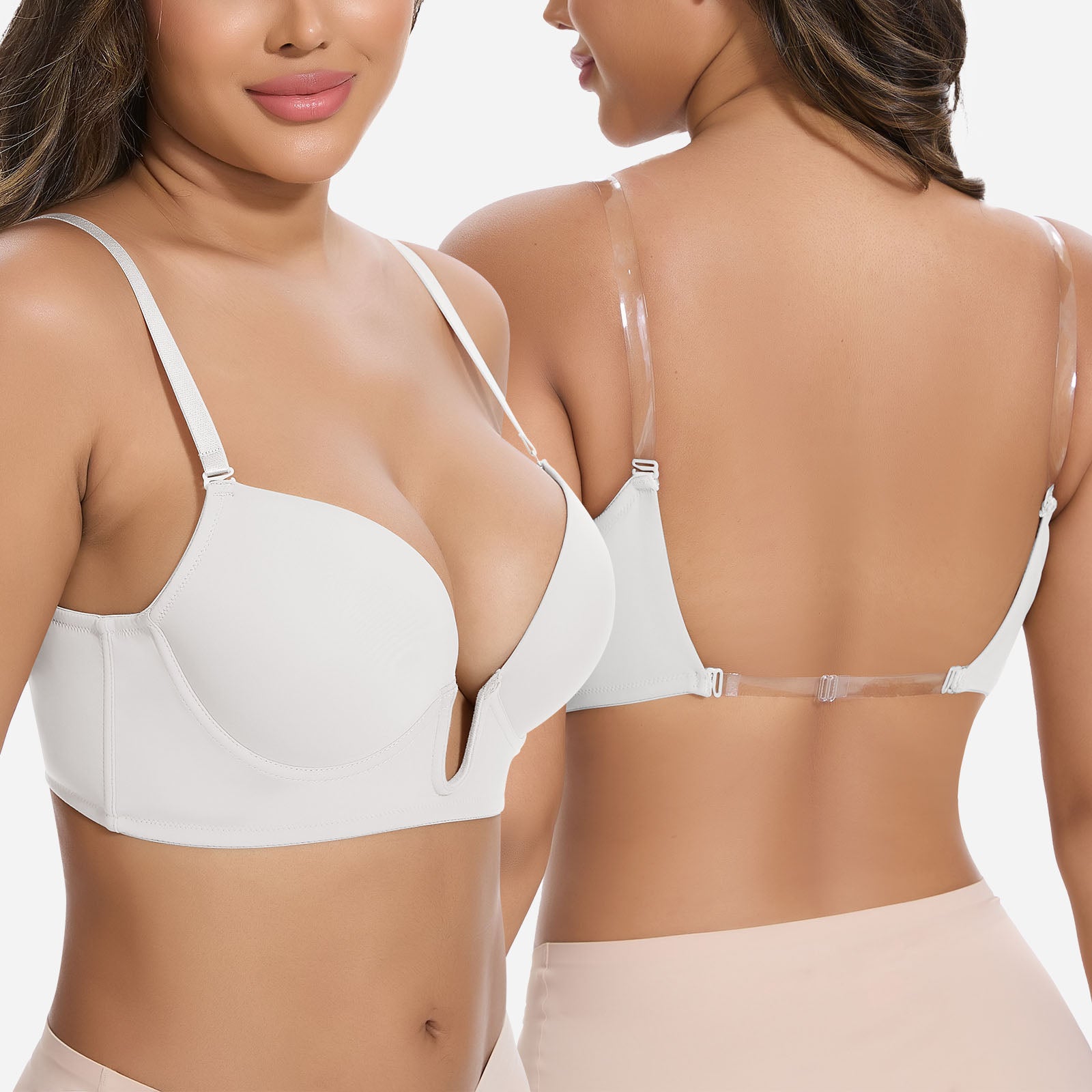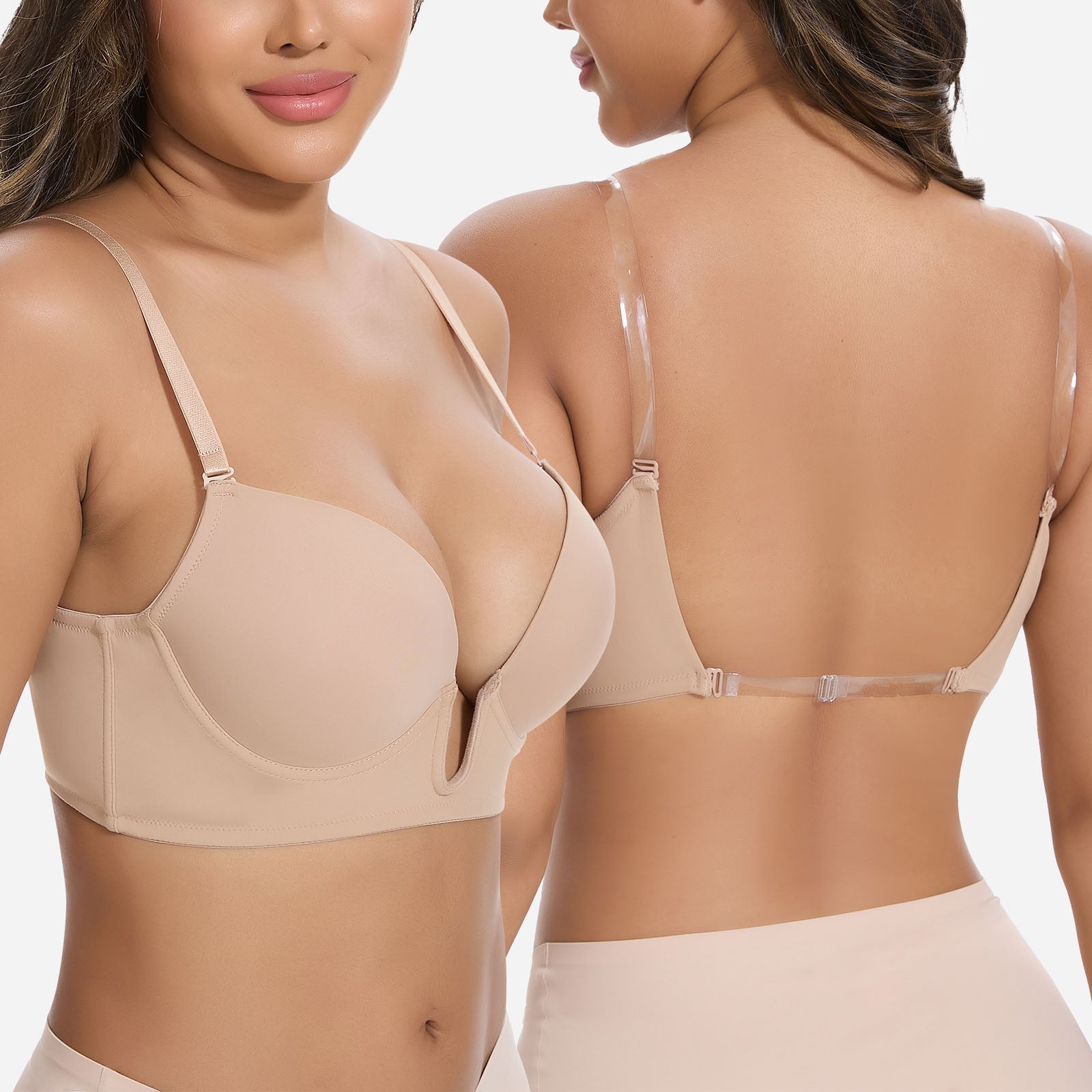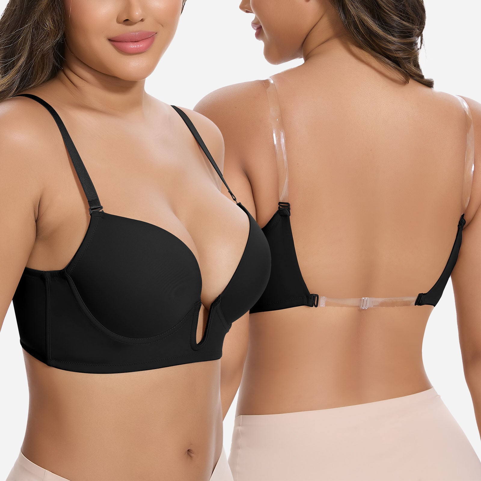 With adjustable straps and multi-way styling—including halter, criss-cross, and classic wear—this versatile plunge bra adapts effortlessly to different outfits. Bonus clear straps provide extra invisibility, making it perfect for weddings, parties, and special occasions.