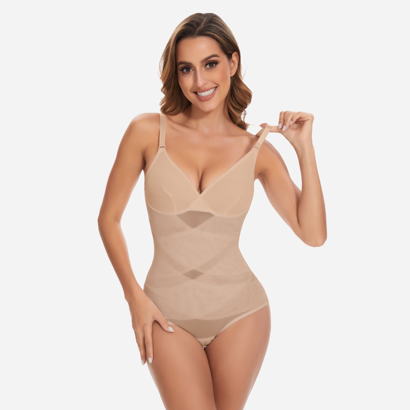 An X-cross tummy control panel smooths the abdomen and back for a naturally defined hourglass silhouette. The pleated butt-lifting design enhances curves without compression, and the hook-and-eye closure allows easy wear and convenient bathroom access.