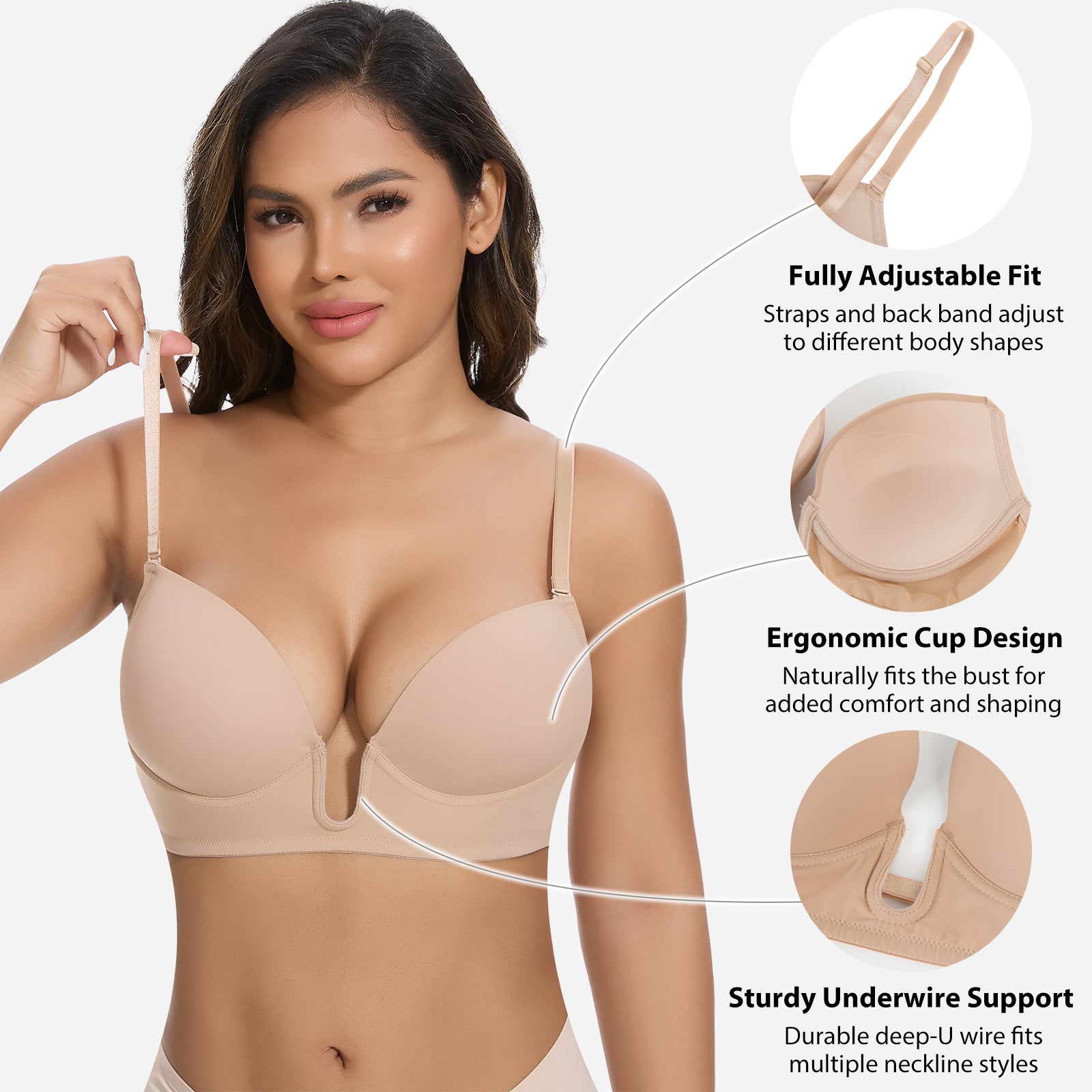 • Deep U-Plunge Underwire: Supportive underwire with a deep U neckline designed for low-cut outfits.