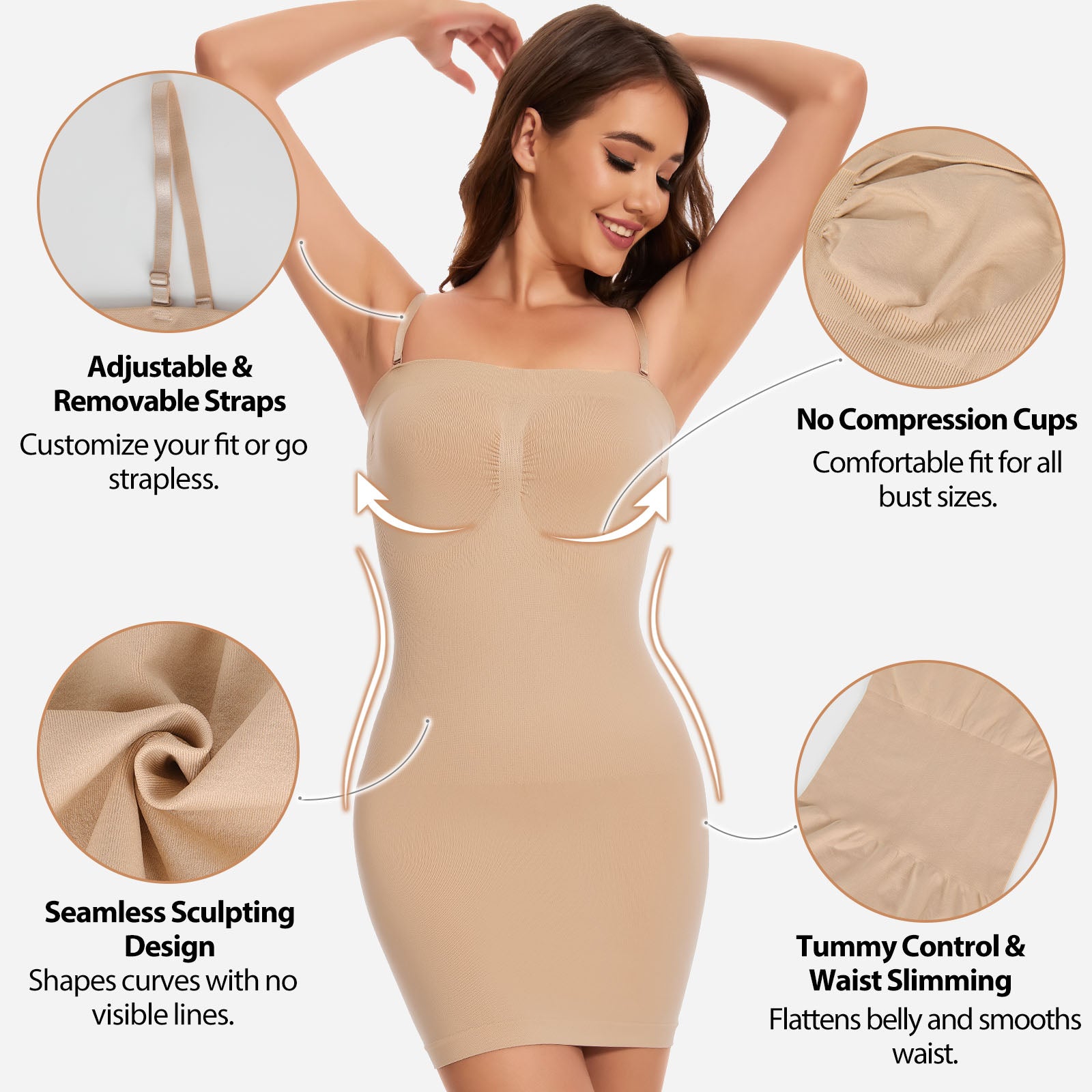 Seamless Sculpting Design: Helps shape the bust, waist, and hips for a smooth silhouette.