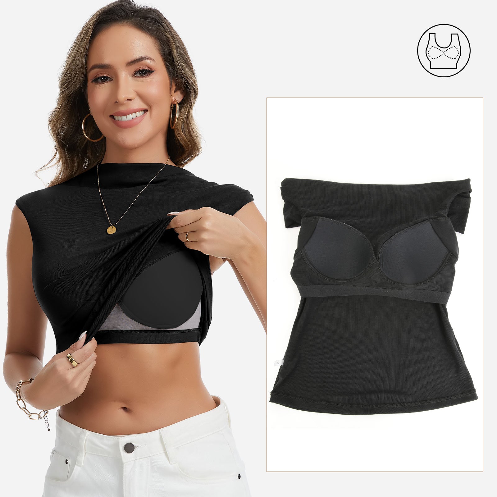 Joyshaper One-Shoulder Boat Neck Tank Top with Built-In Bra