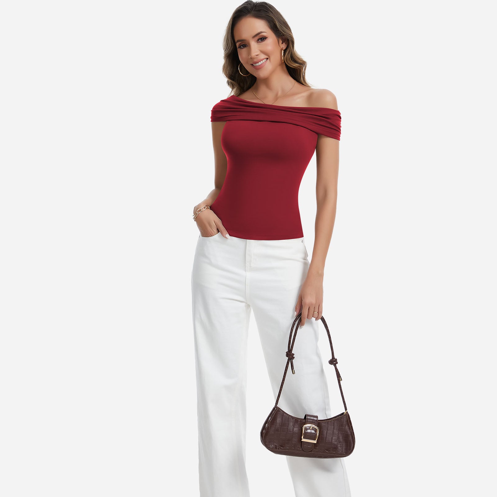 Joyshaper Ladies Ribbed Square Neck Tee Slim Fit Summer Top