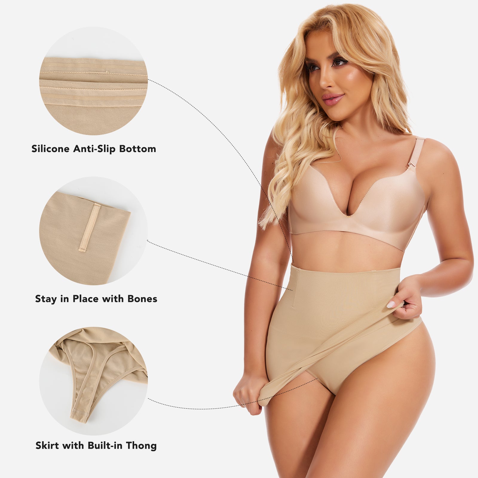 Crafted from soft, breathable stretch fabric, it hugs your curves comfortably while remaining invisible under clothing. The built-in thong eliminates visible panty lines, while the wide waistband with steel bones keeps the skirt securely in place without rolling.