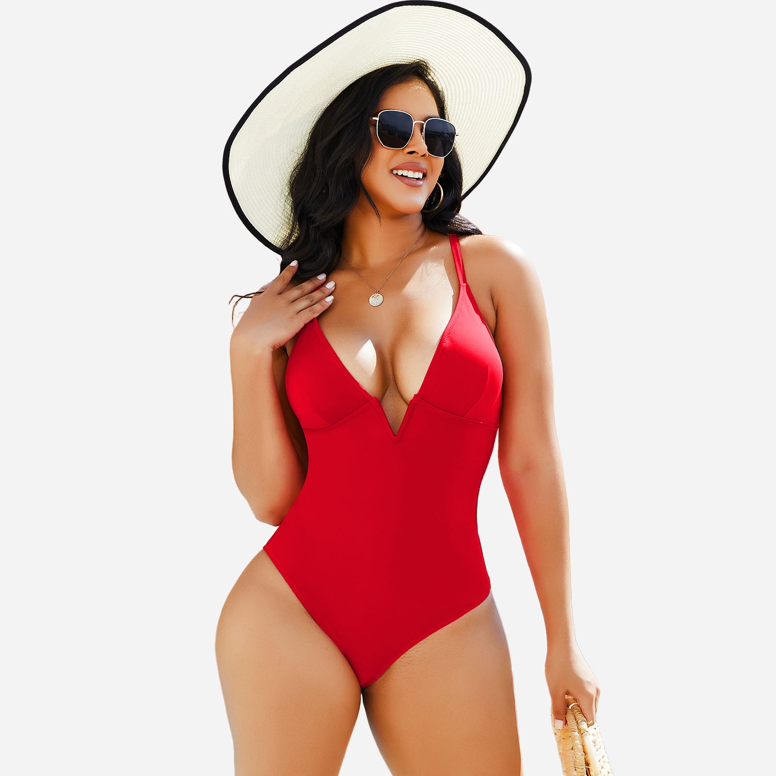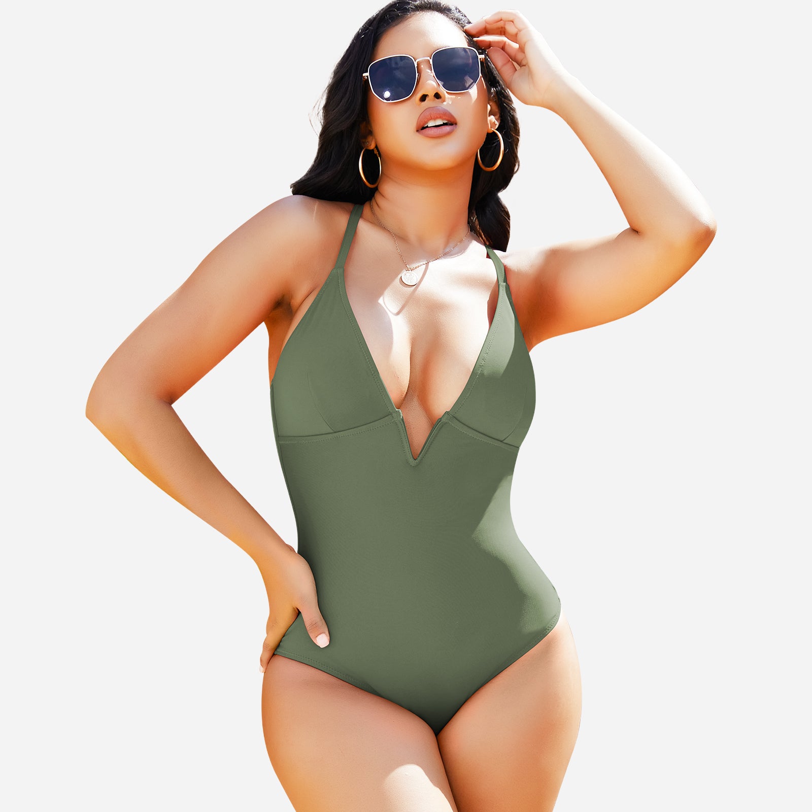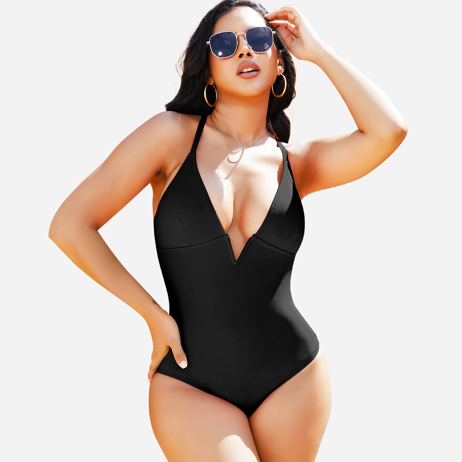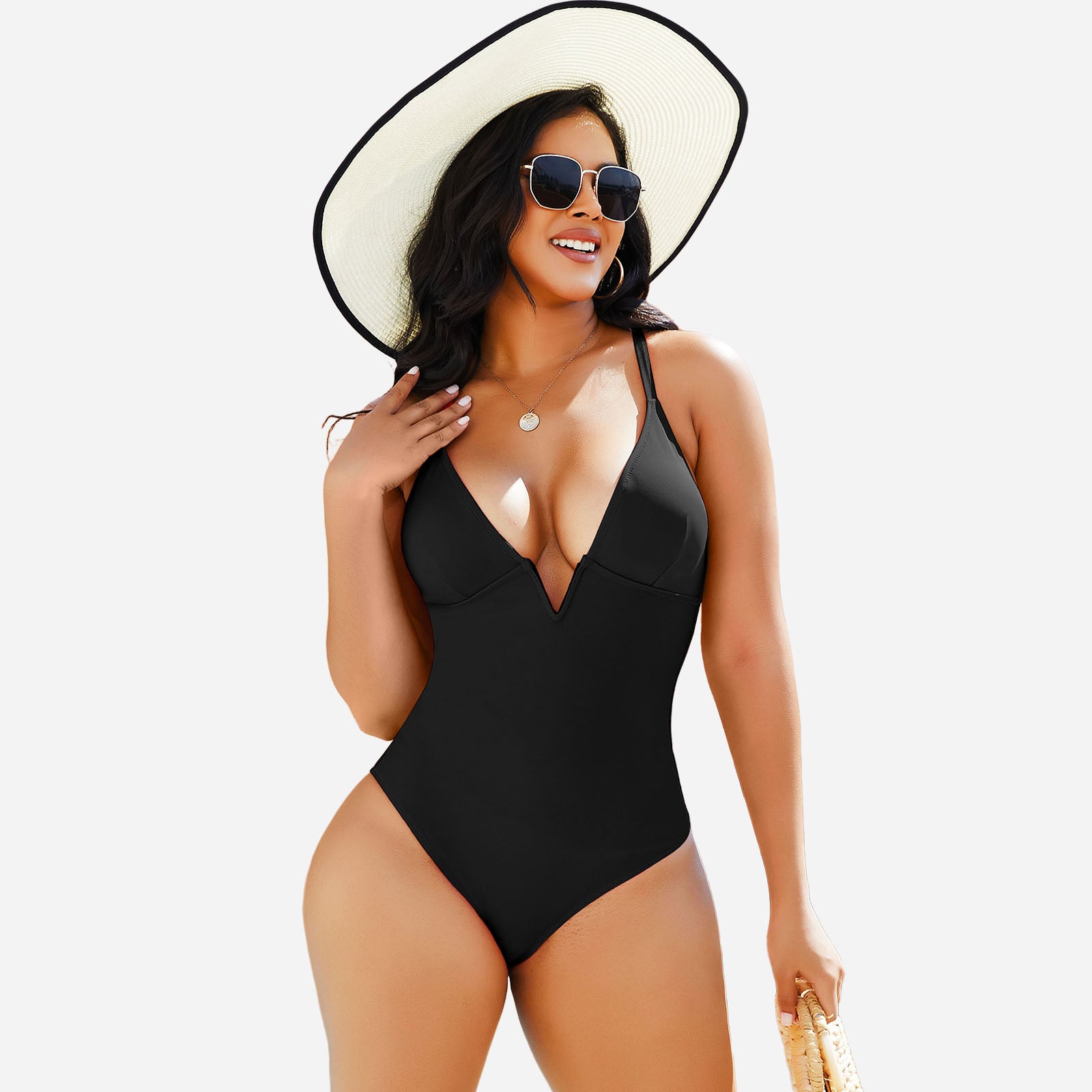 Stylish design: Deep V neckline and streamlined cut create a modern, elegant swimwear look.