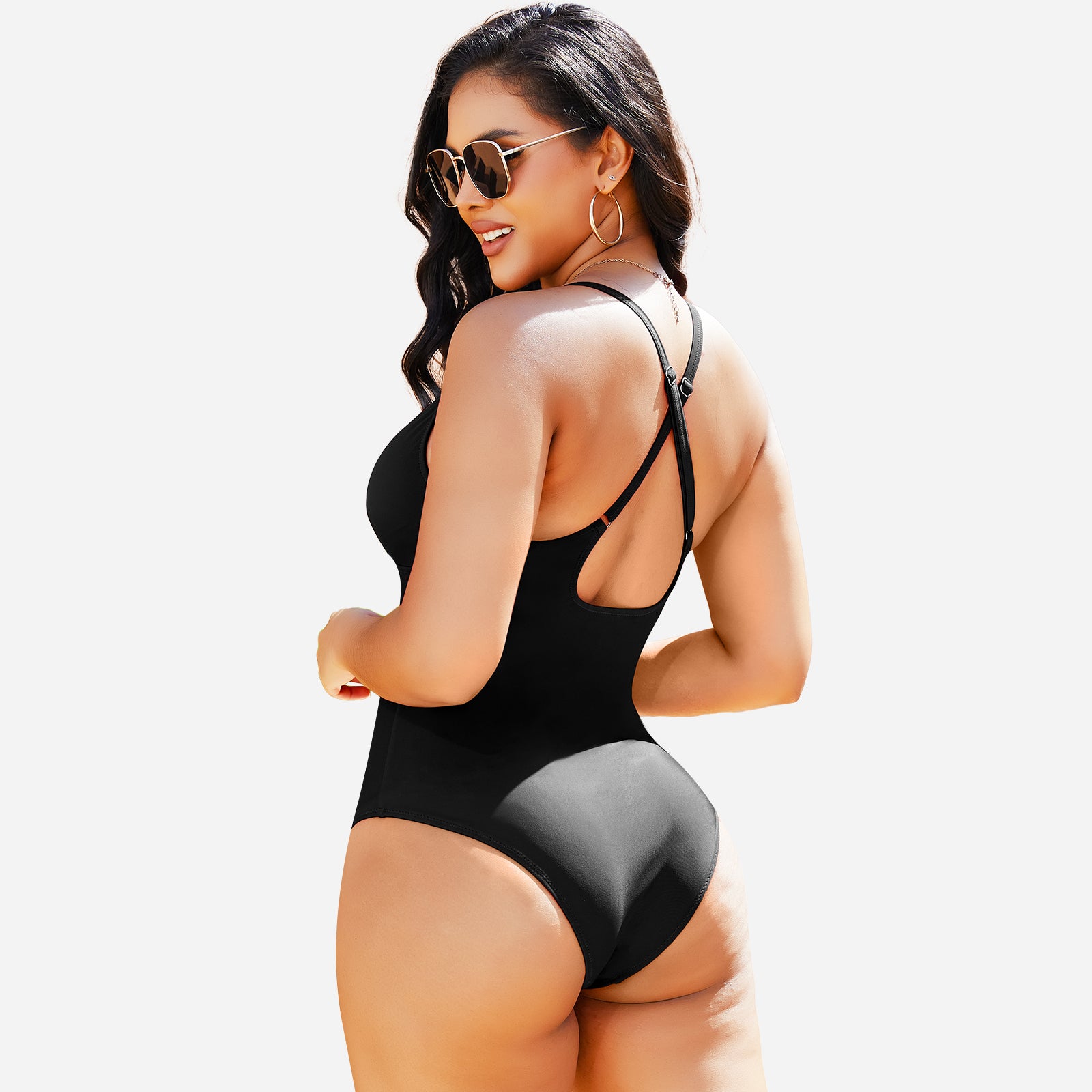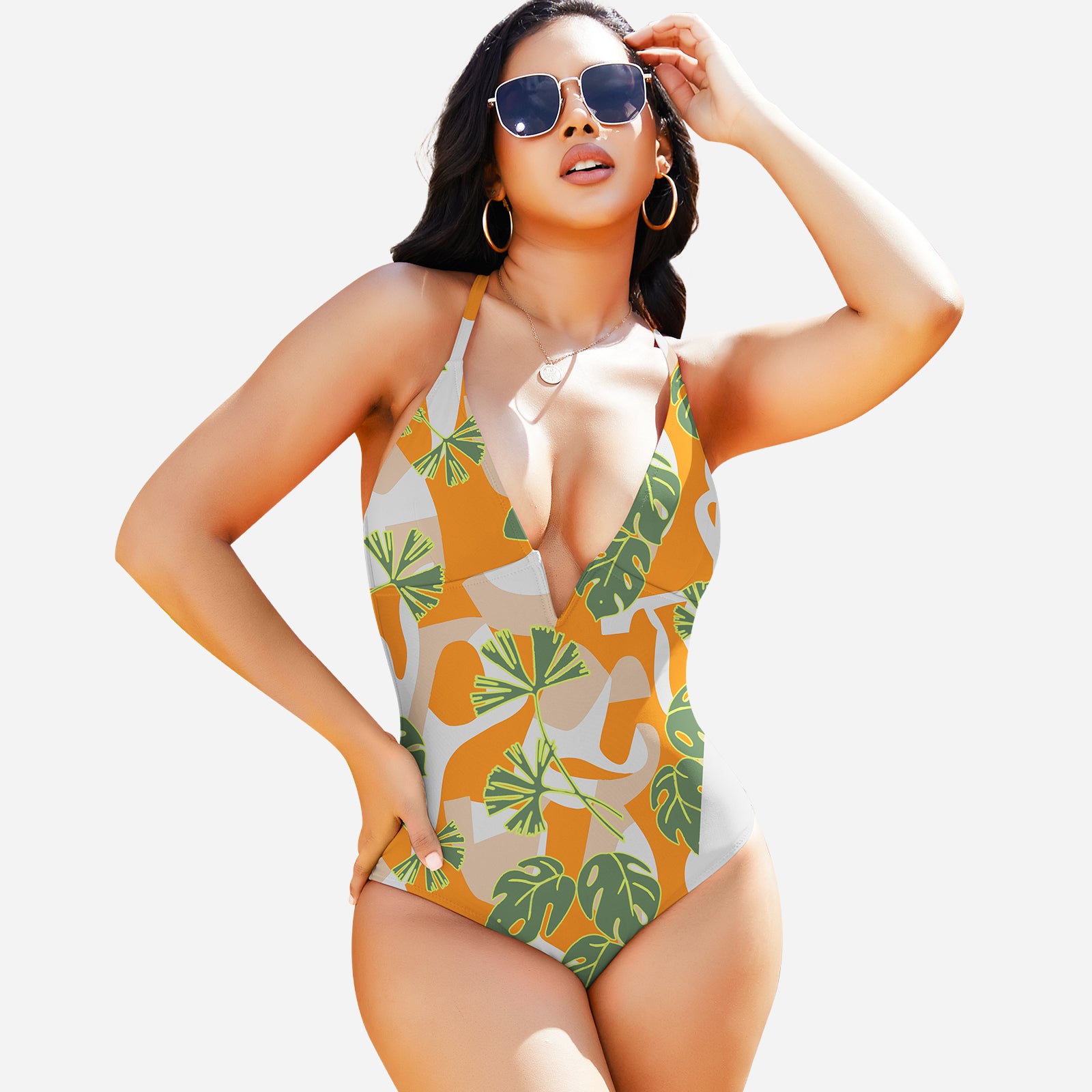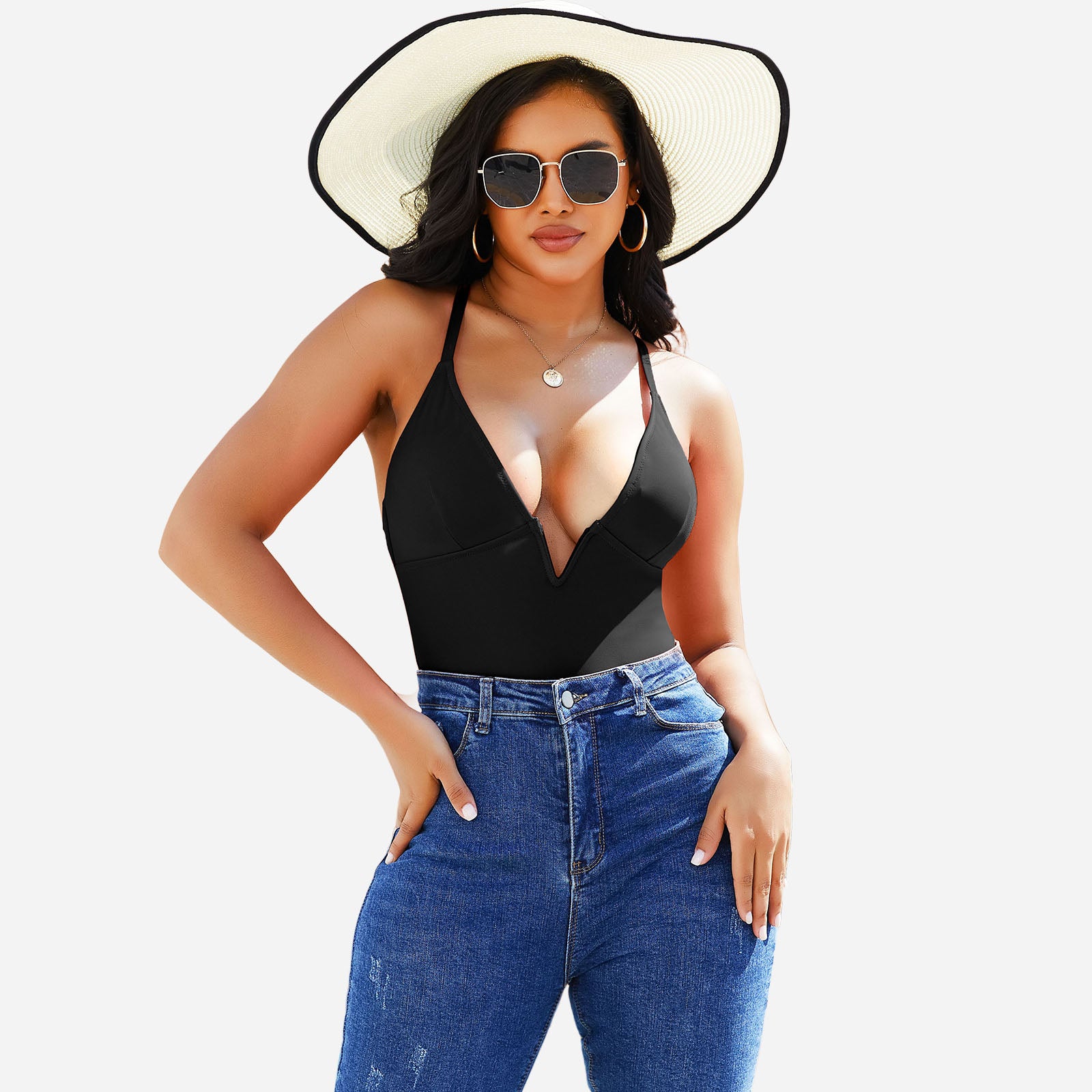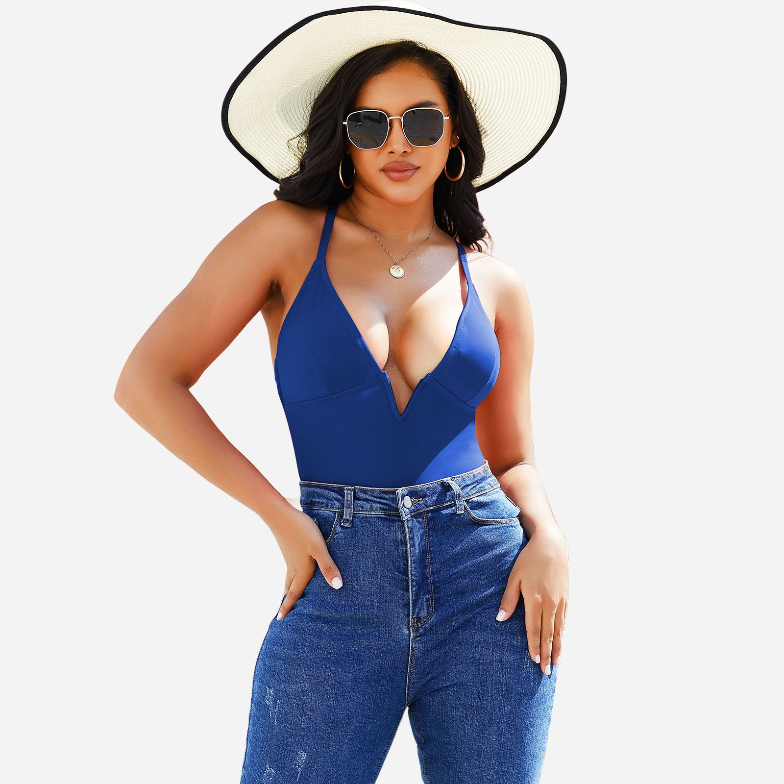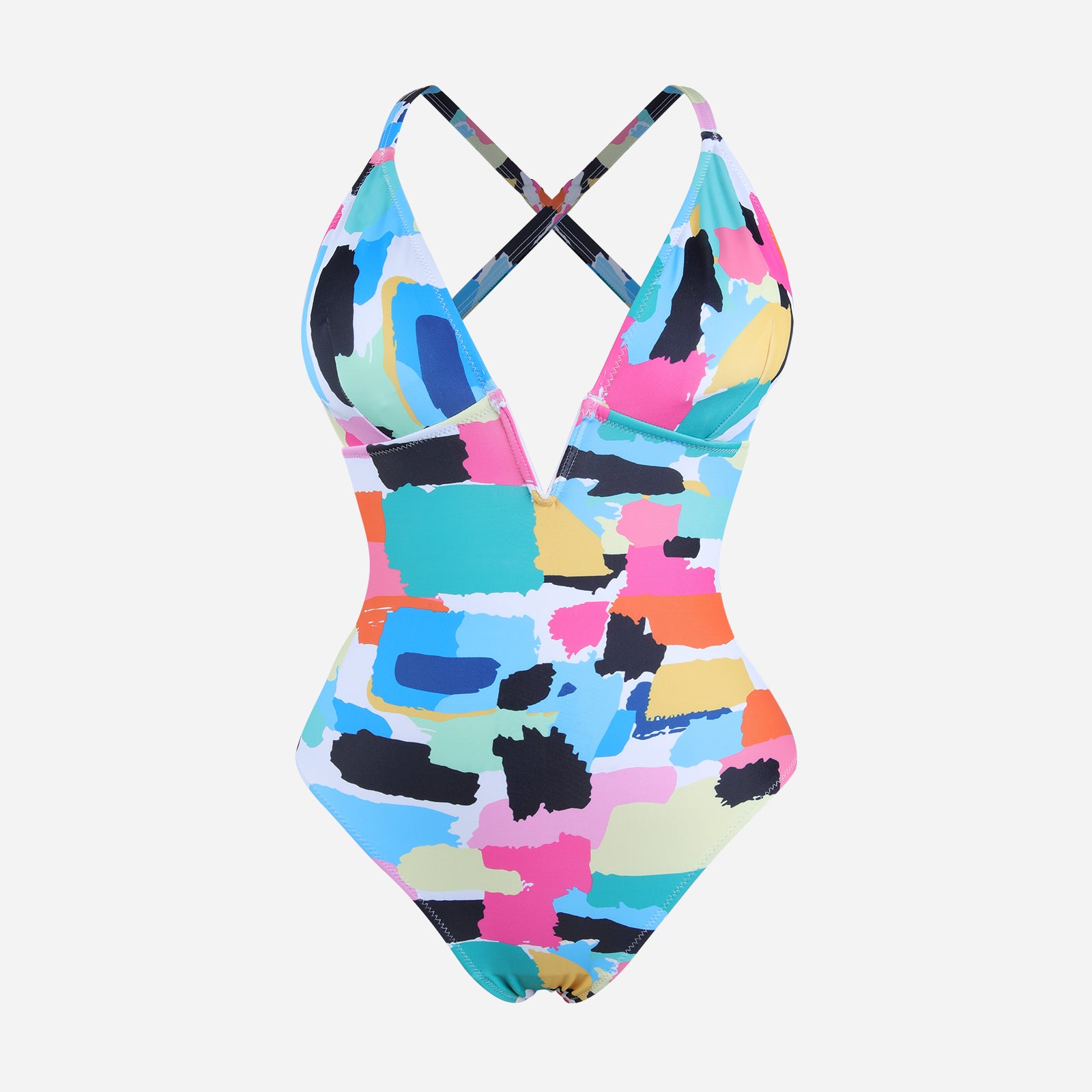 Stylish design: Deep V neckline and streamlined cut create a modern, elegant swimwear look.