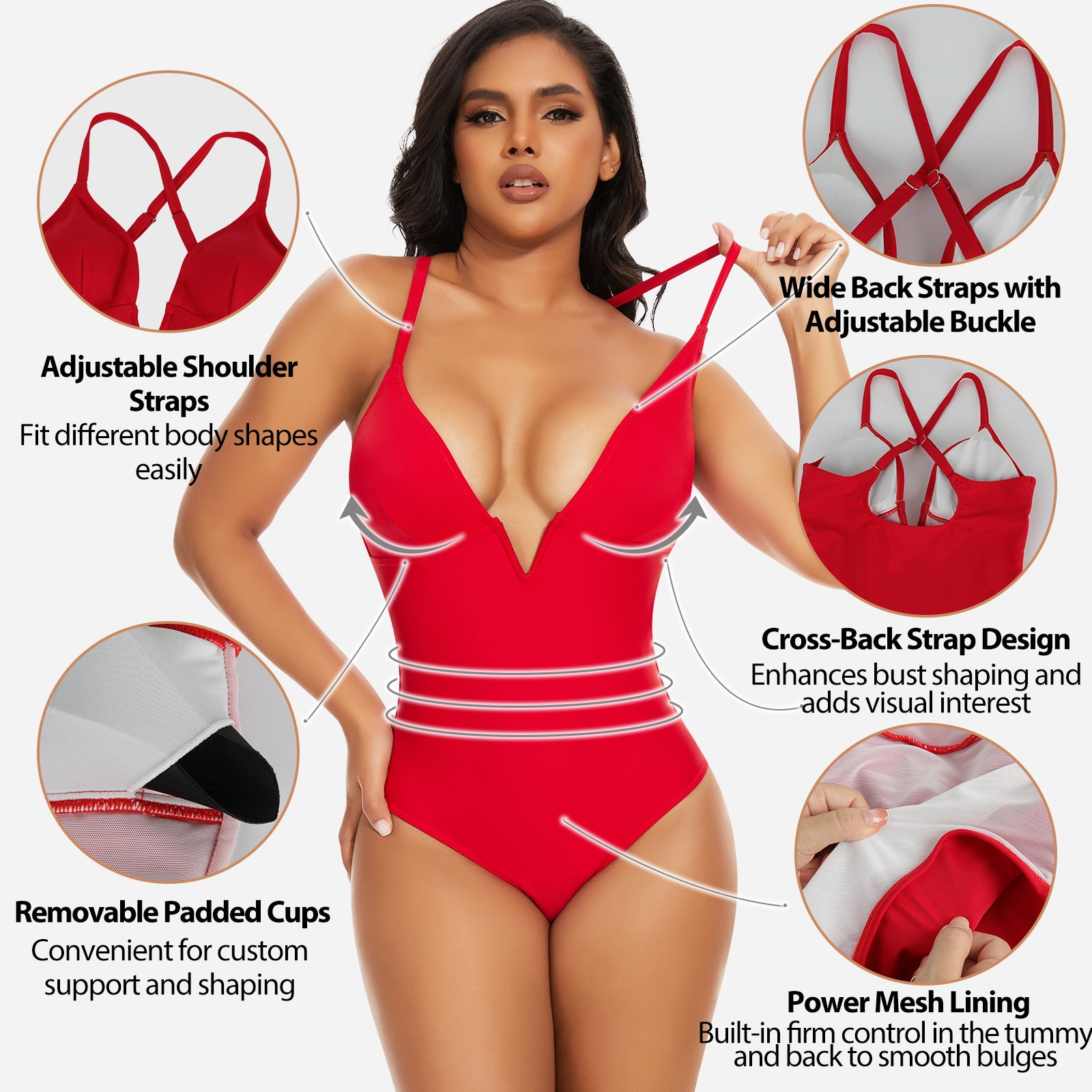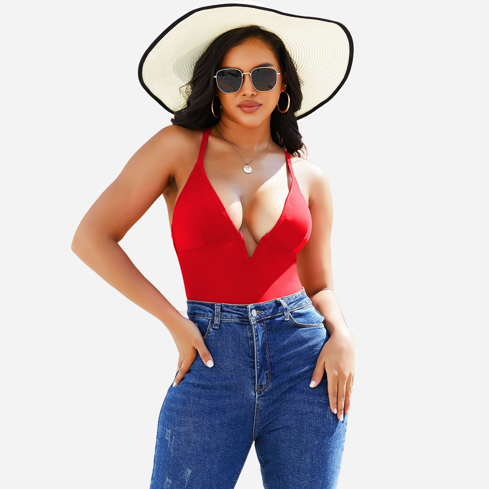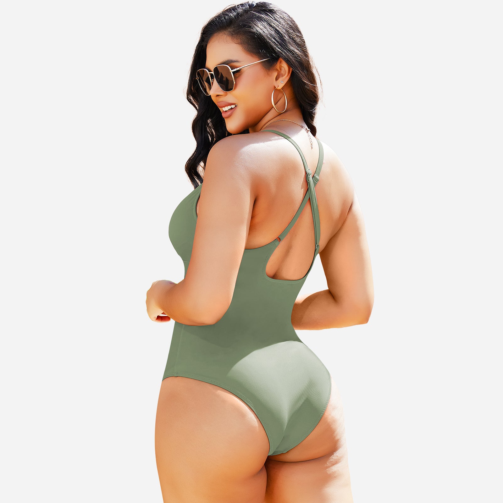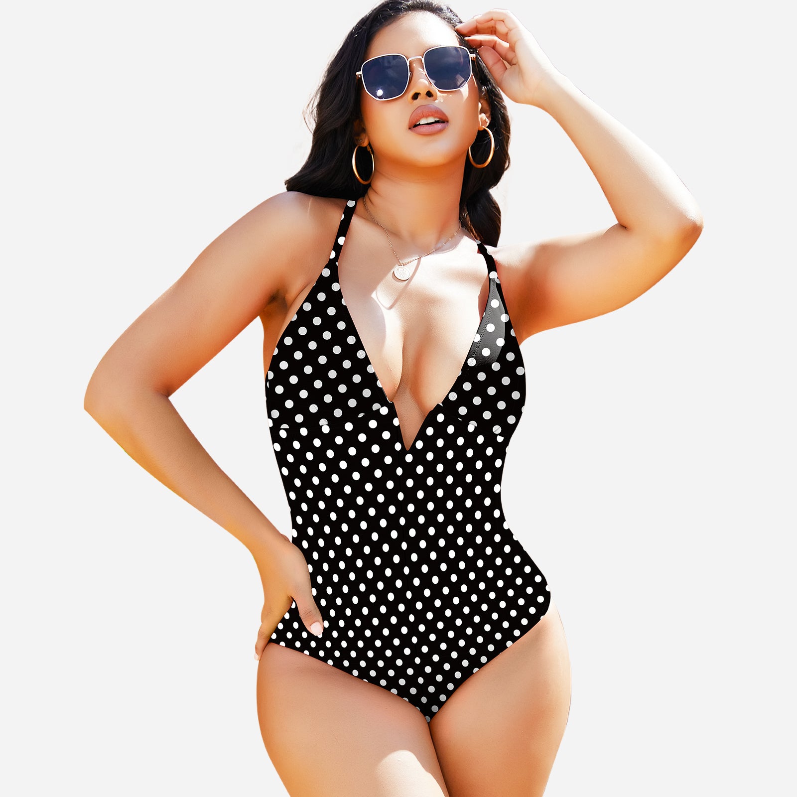 Stylish design: Deep V neckline and streamlined cut create a modern, elegant swimwear look.