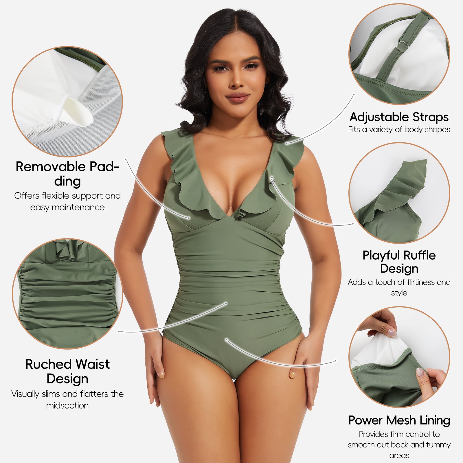 Ruched waist design: Visually slims and conceals tummy fat for a flattering silhouette.