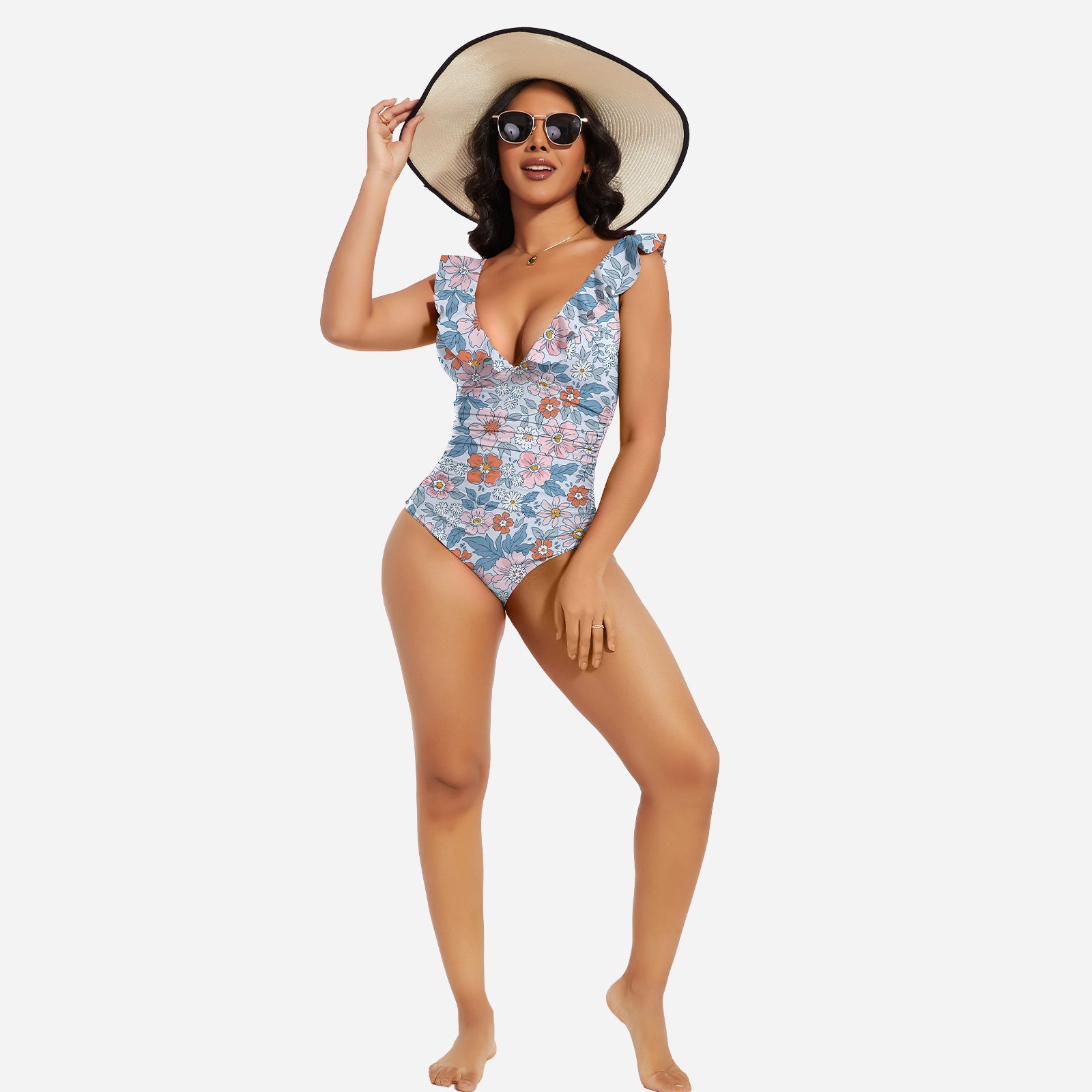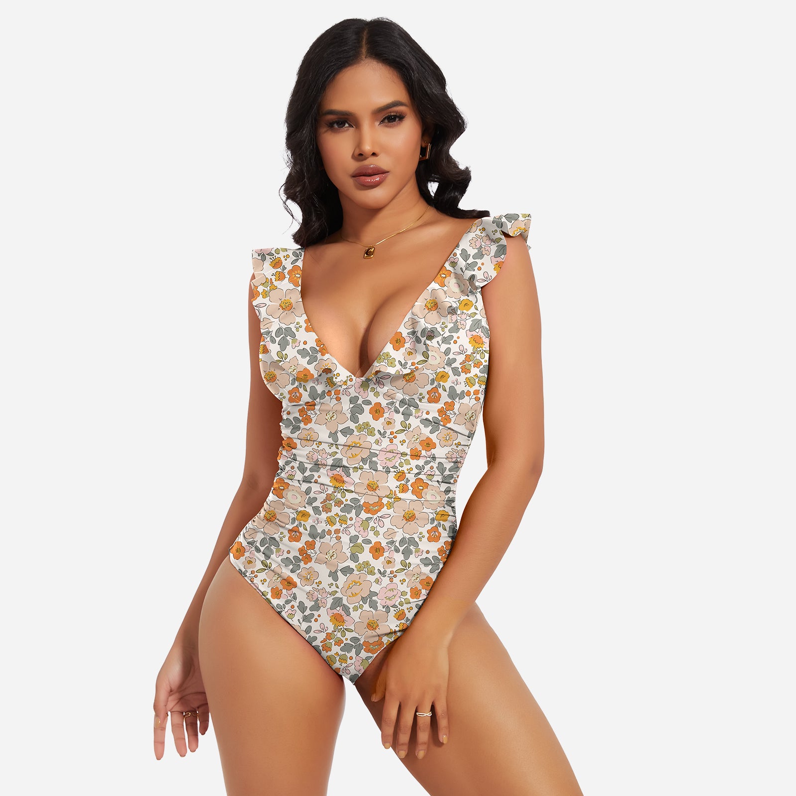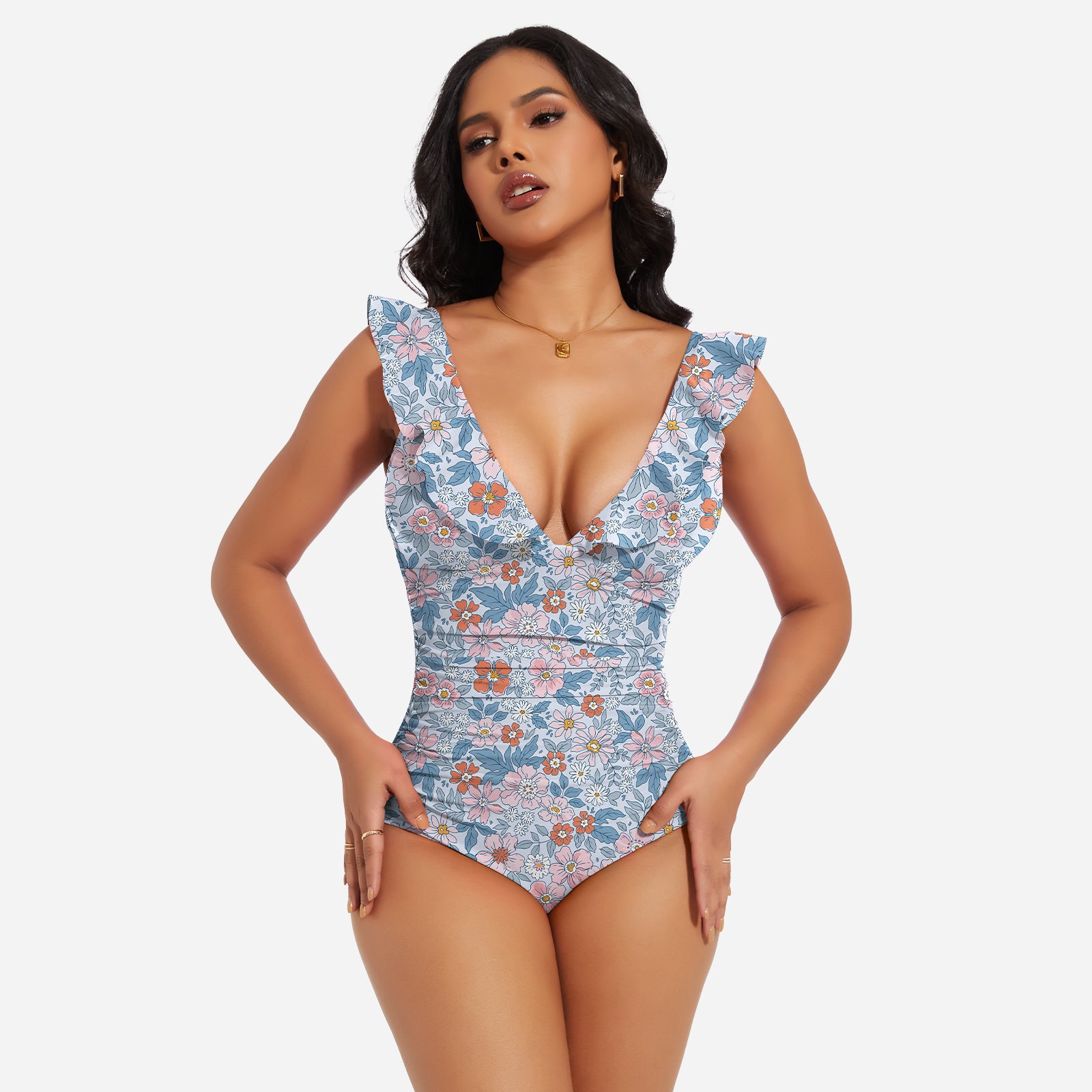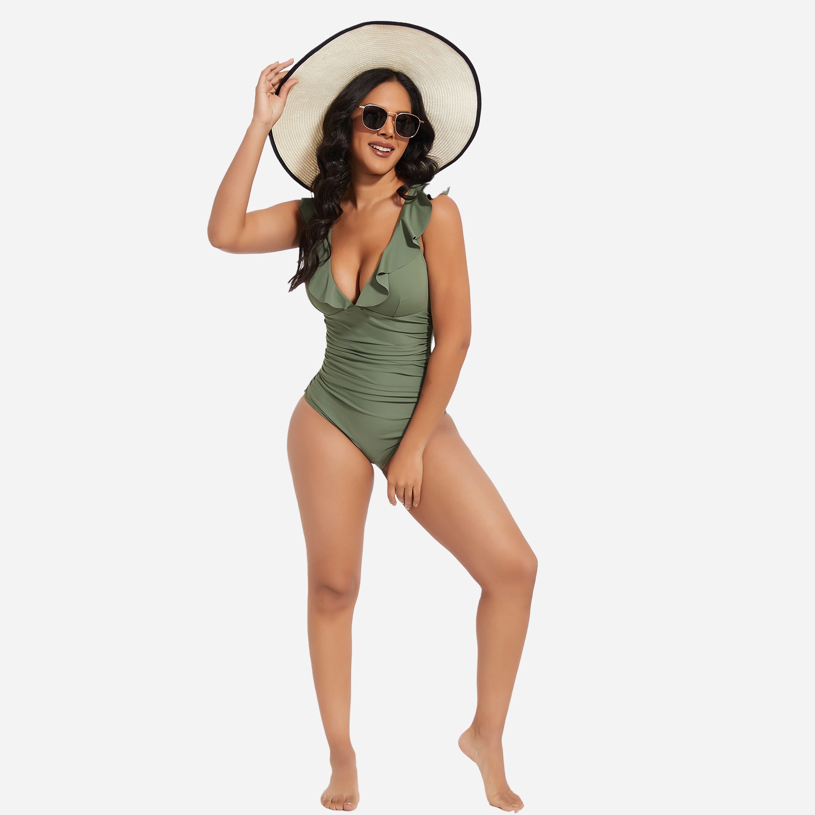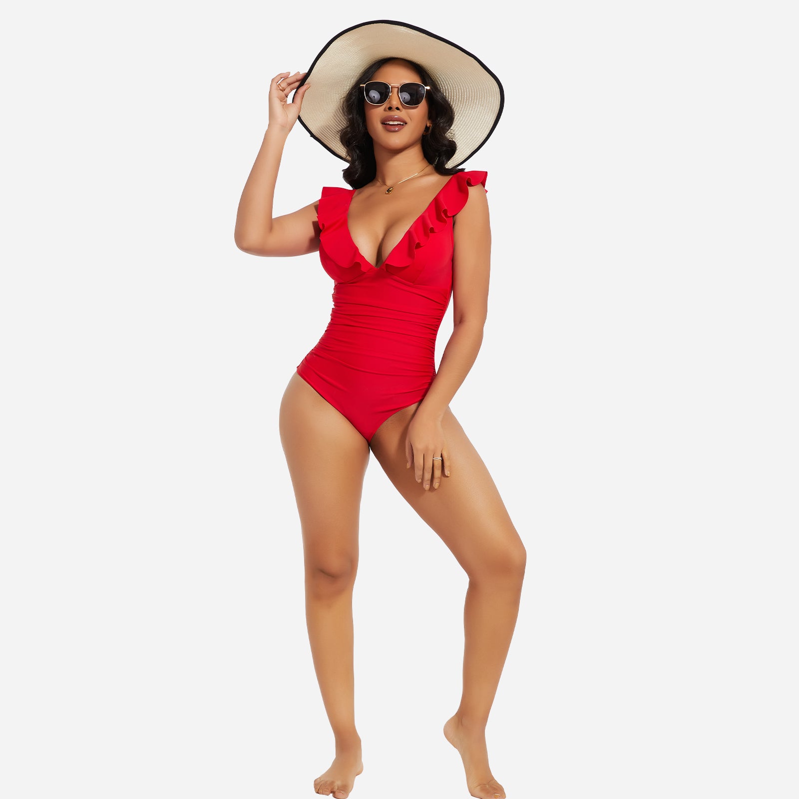 Turn heads at the beach or pool with the JOYSHAPER Women's One Piece Swimsuit, designed with a flattering V-neck and stylish ruffle details. This tummy control bathing suit smooths your midsection and enhances your natural curves, creating a slimming silhouette that boosts your confidence. Made from premium quick-drying and chlorine-resistant fabric, it offers all-day comfort, excellent stretch, and long-lasting durability. The supportive built-in structure and elegant plunge neckline make it ideal for swimming, sunbathing, or resort wear. Whether you're relaxing by the pool or taking a dip in the ocean, this one-piece swimwear combines fashion and function for a chic, body-hugging fit.
