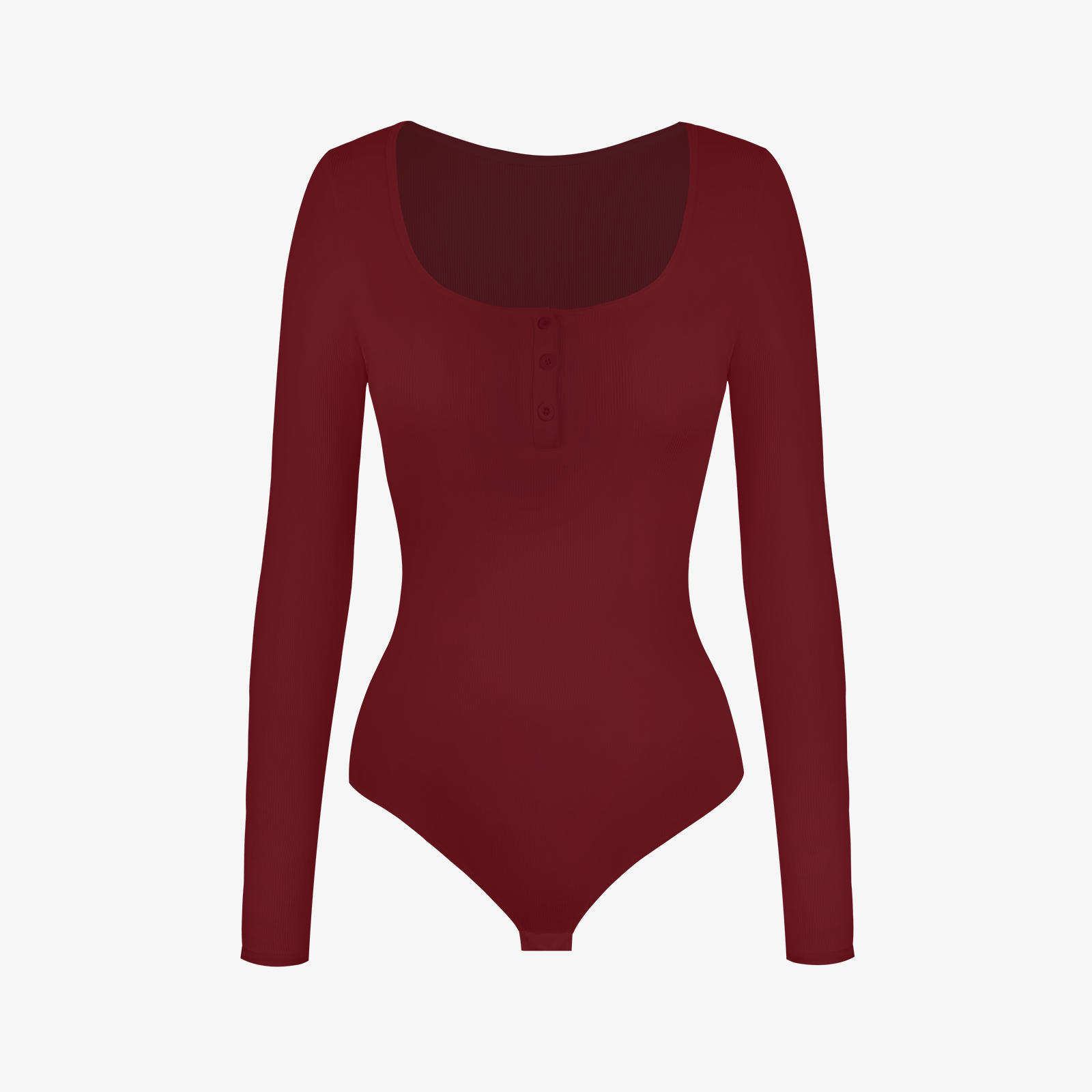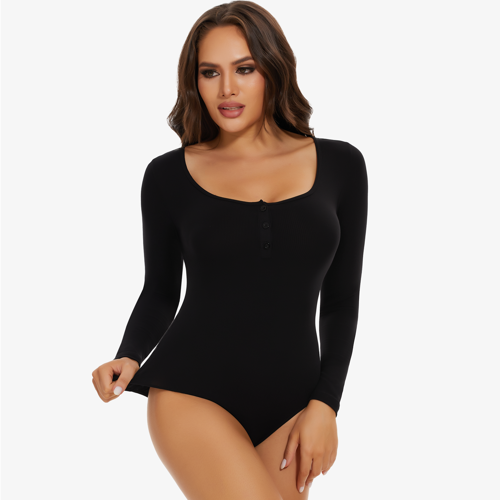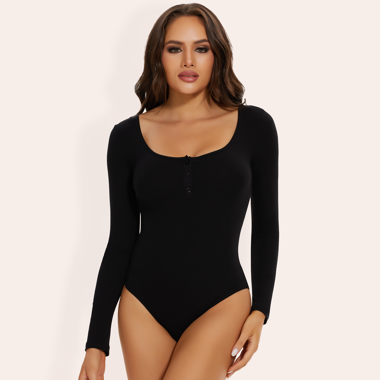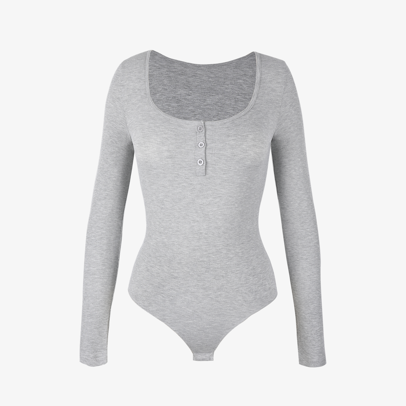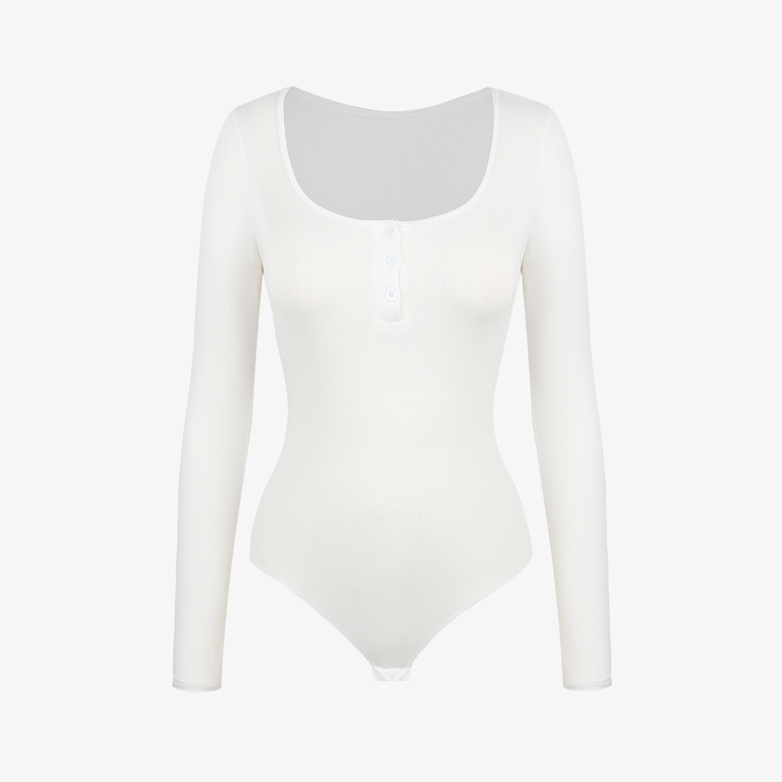 Joyshaper Ribbed Henley Long Sleeve Bodysuit