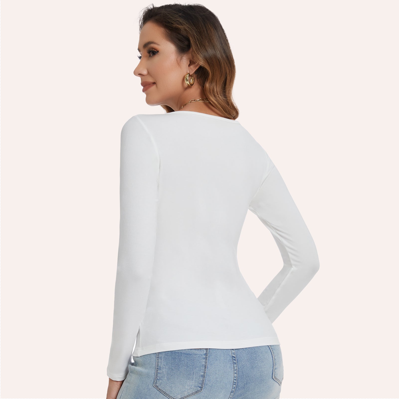 Joyshaper Scoop Neck T Shirt Slim Fit Long Sleeve Tops Tee