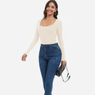 Joyshaper Women's Long Sleeve Bodysuit Fleece Thermal Square Neck Top