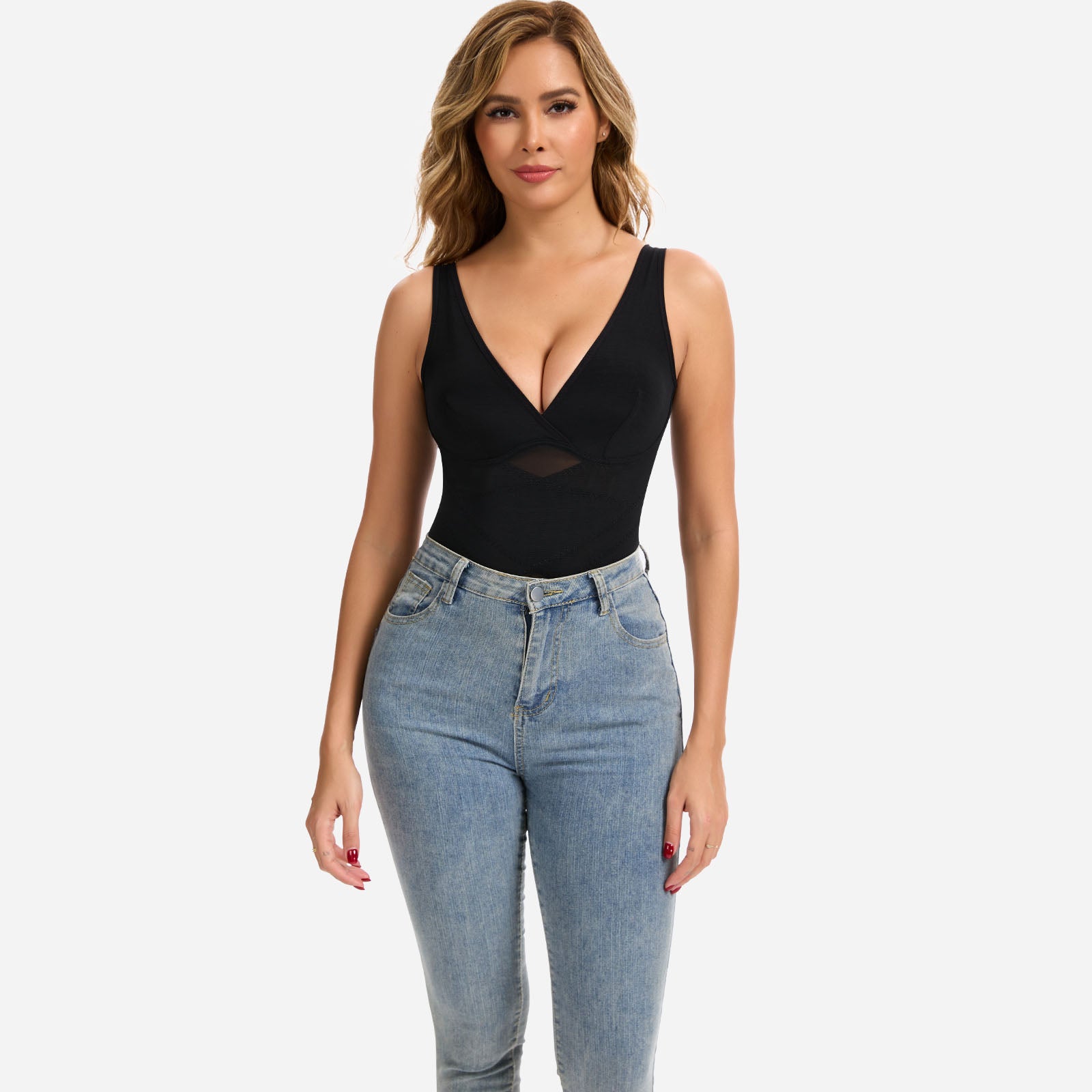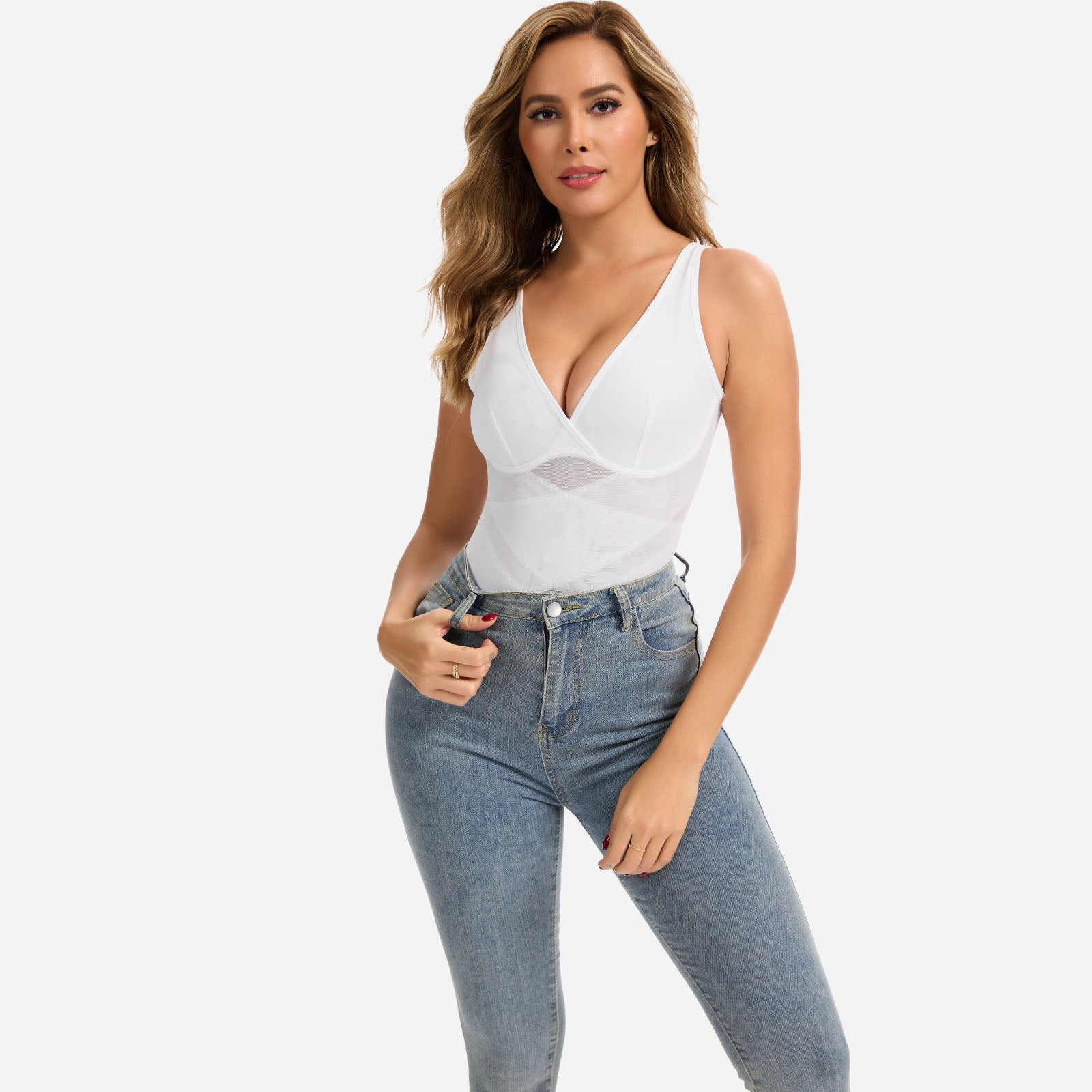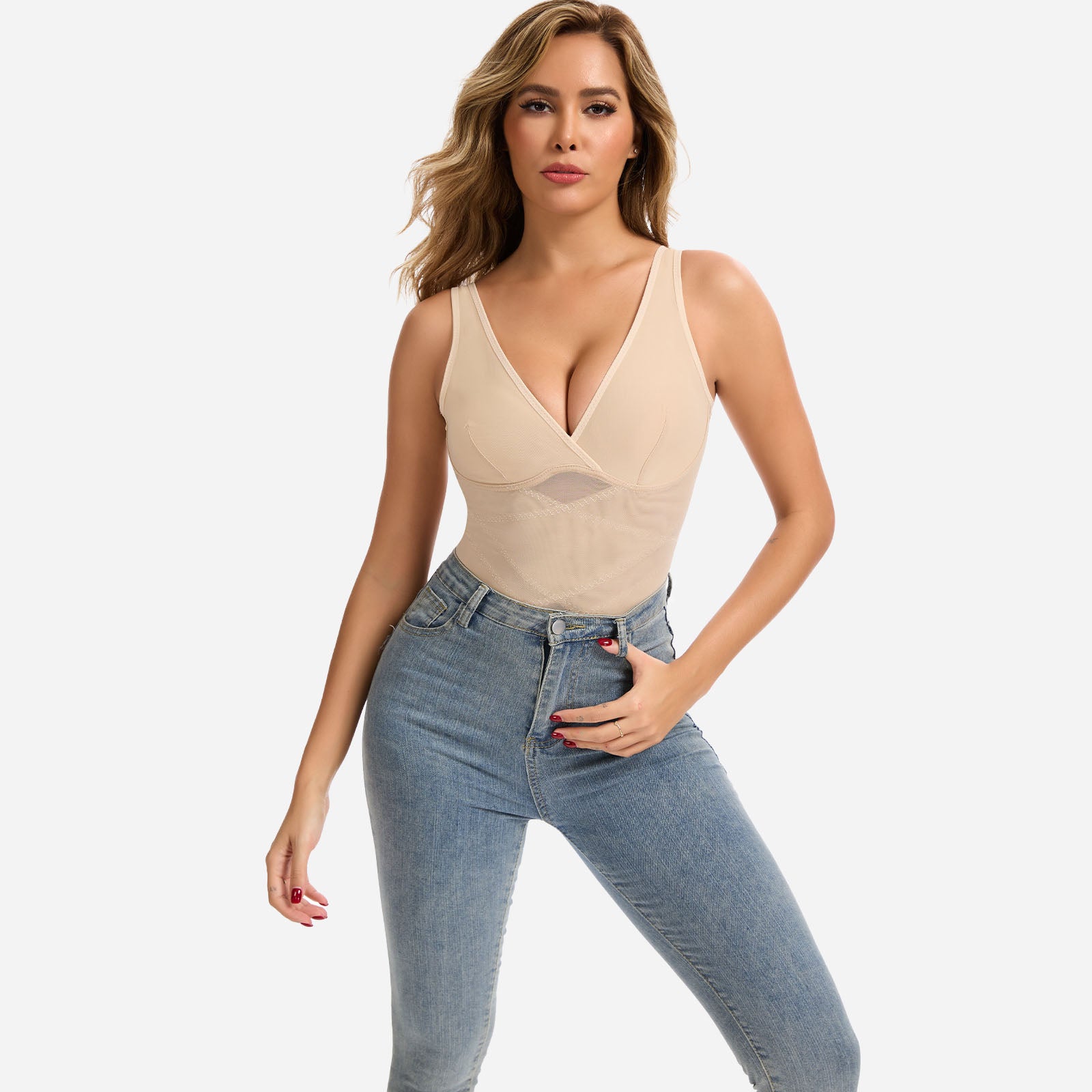 Joyshaper V-Neck Cross-Compression Tummy Control Shapewear Bodysuit
