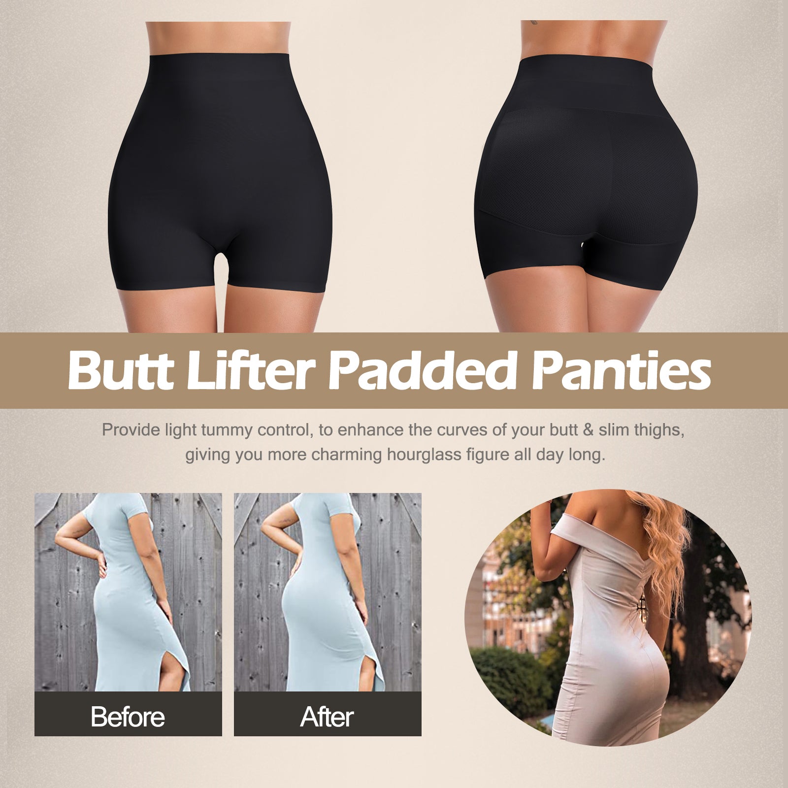 Build-in Butt Pads ► This butt pads shapewear are designed for women with flat hips, small hips, and no hips. The booty pads for bigger butt can enhance your bottom curve and shape your hip for a natural look. When you put on these butt enhancer padded underwear, you will see naturally butt lifting, bigger and more attractive instantly, you will look better and feel more confident.