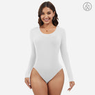 Joyshaper Women’s V Neck Ribbed Fleece Long Sleeve Bodysuit Top