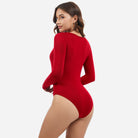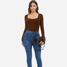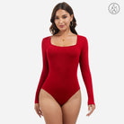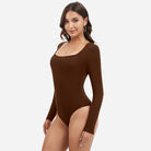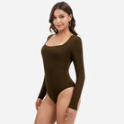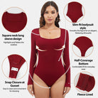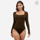Joyshaper Women's Long Sleeve Bodysuit Fleece Thermal Square Neck Top