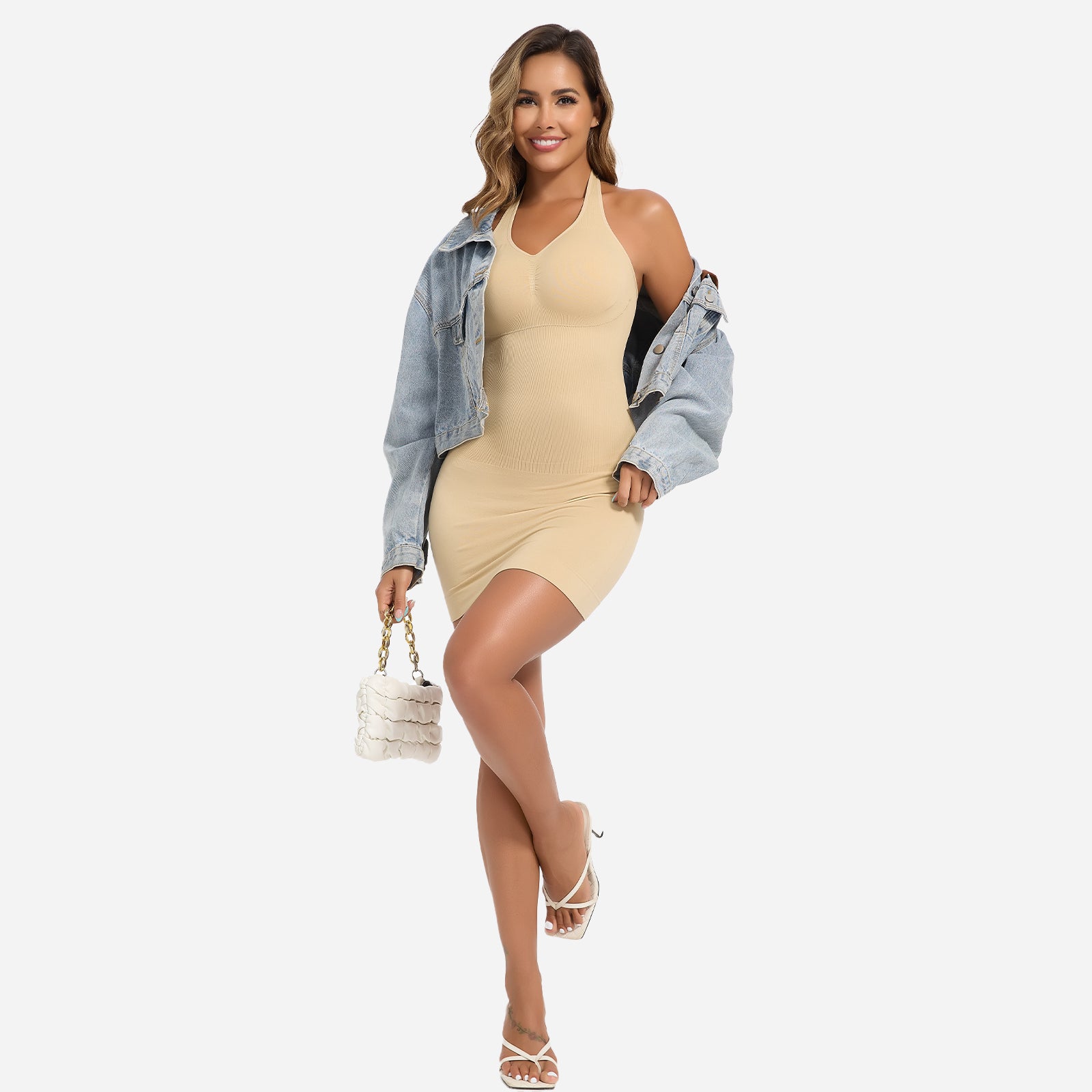 Joyshaper Halter Slip Dress Shapewear with Removable Cups Tummy Control