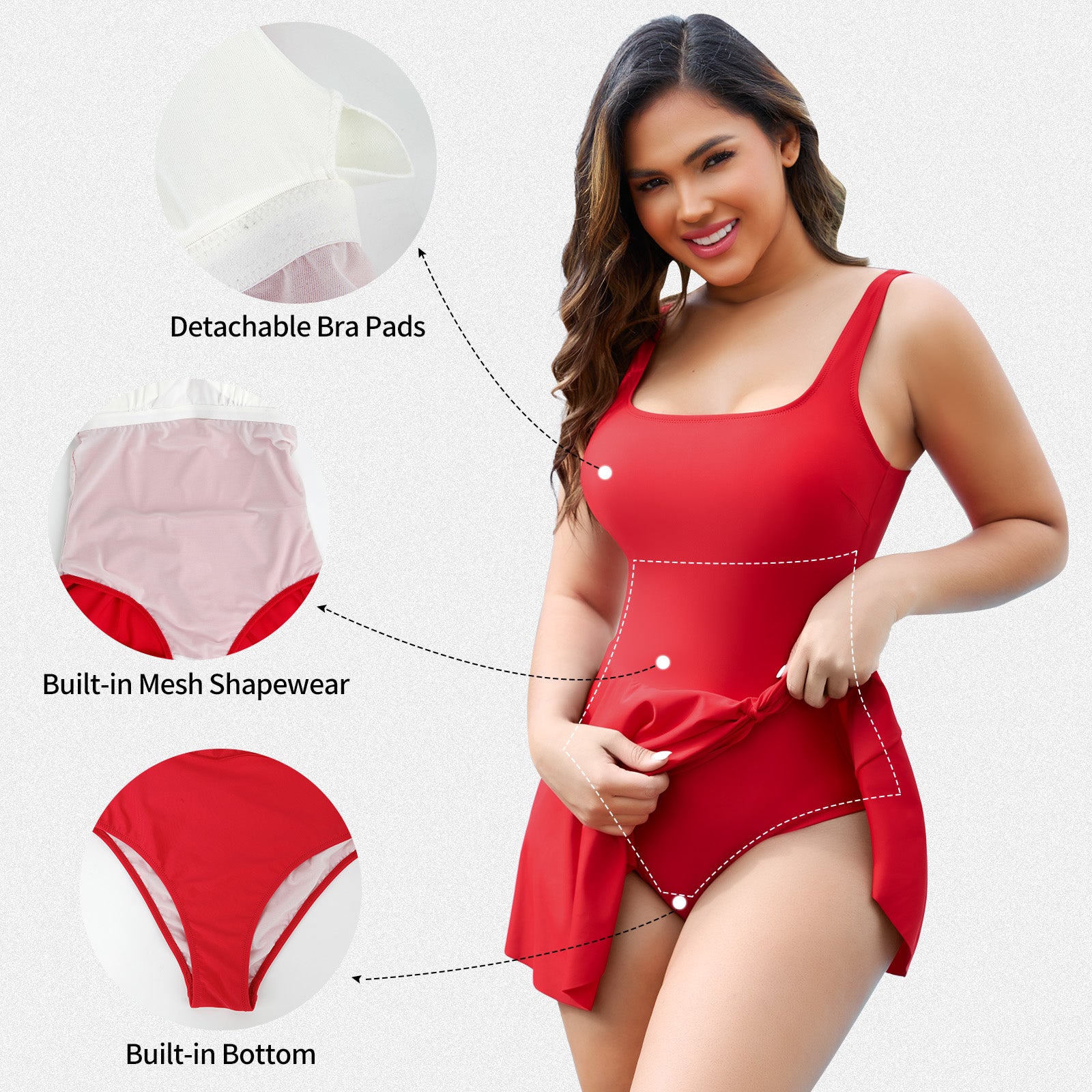 Joyshaper Women One Piece Swimdress Tummy Control Modest Swimsuit