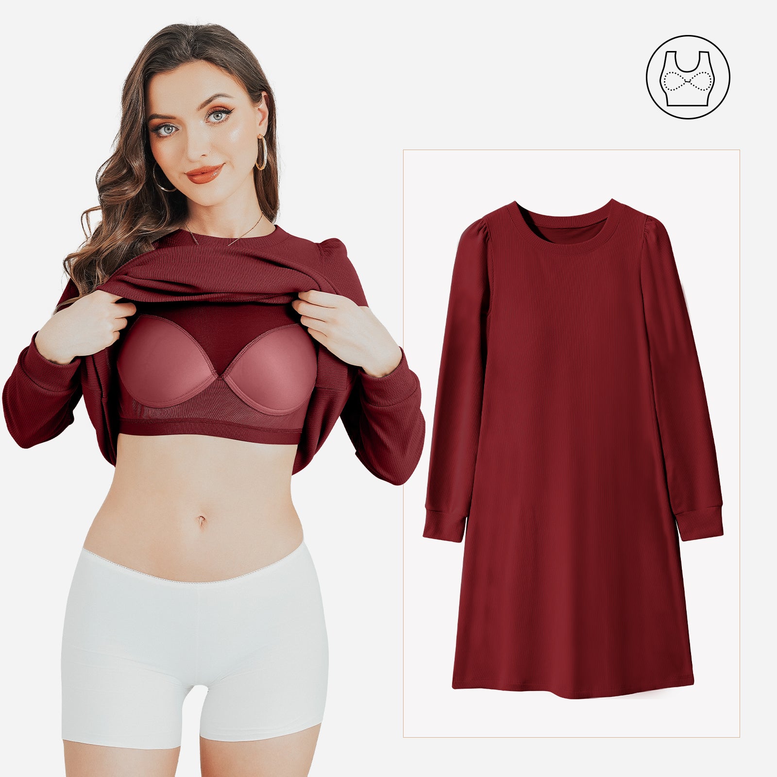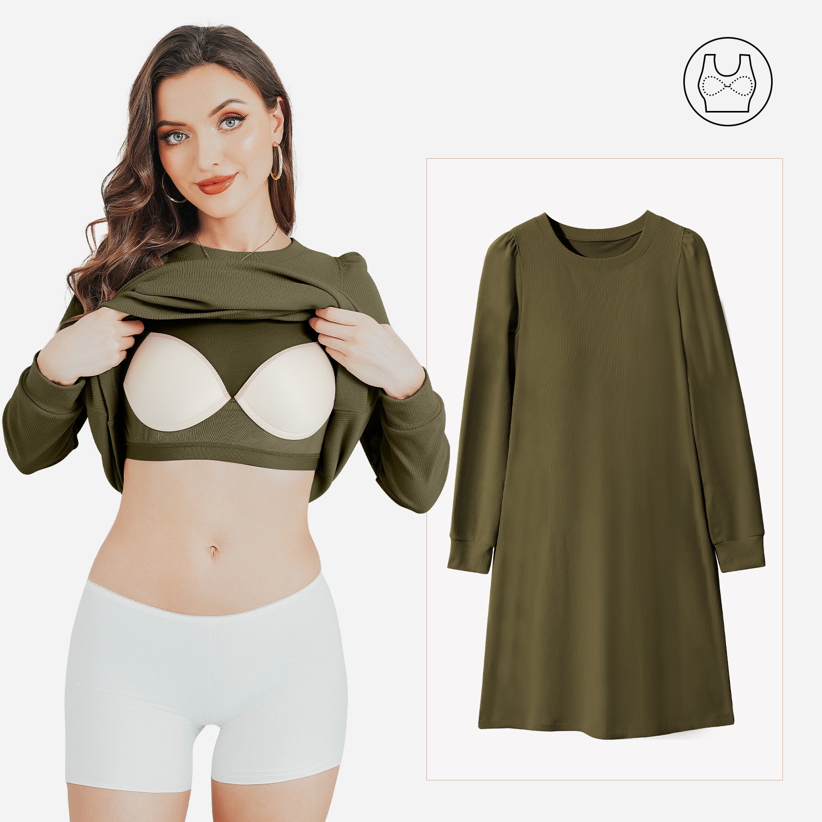 Joyshaper Women’s Brushed Fabric Warm Dress with Built-in Bra