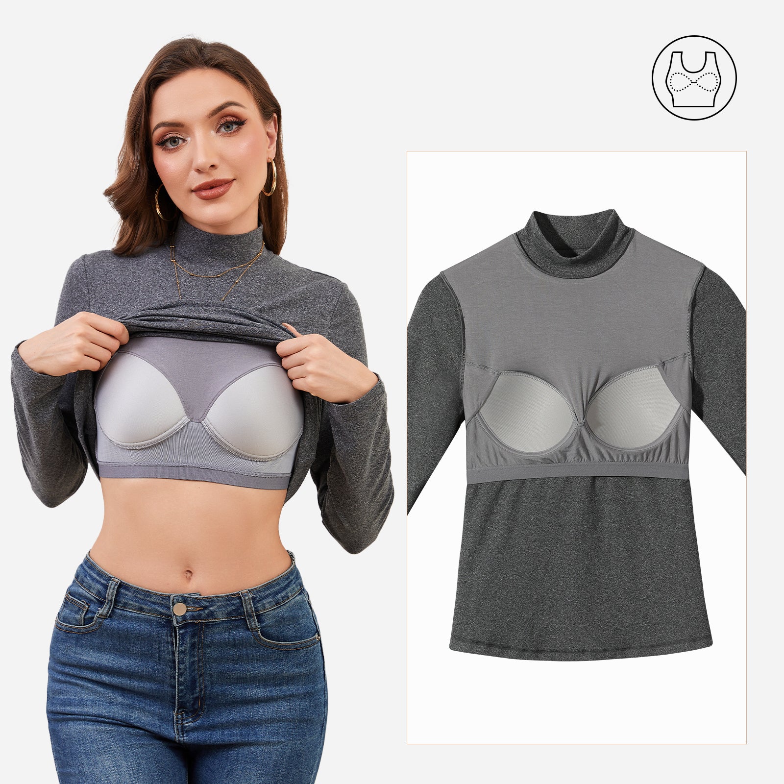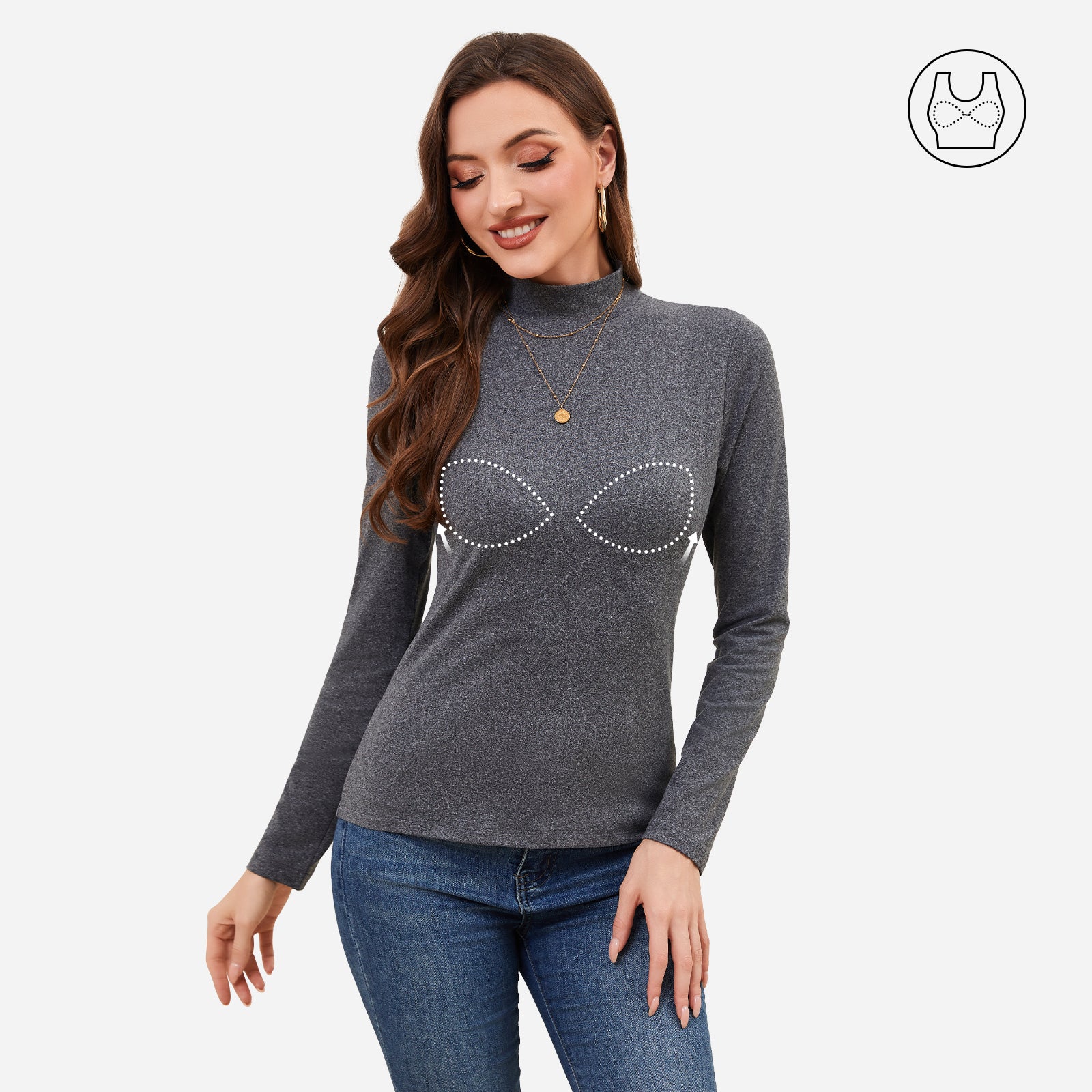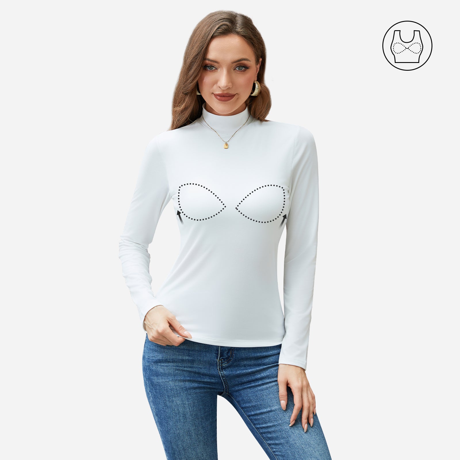 Joyshaper Women's Turtleneck Top Built-in Bra Long Sleeve Casual Tee