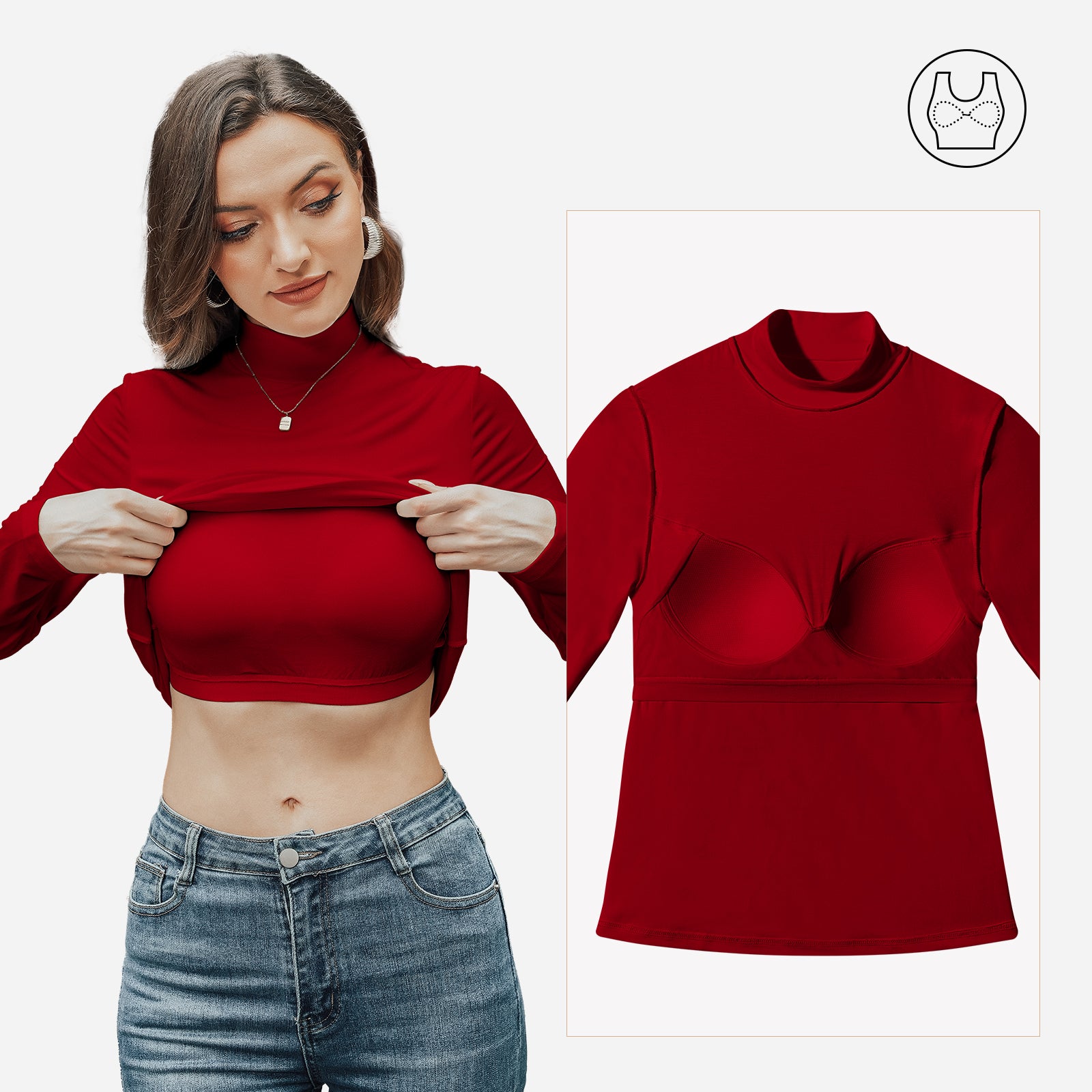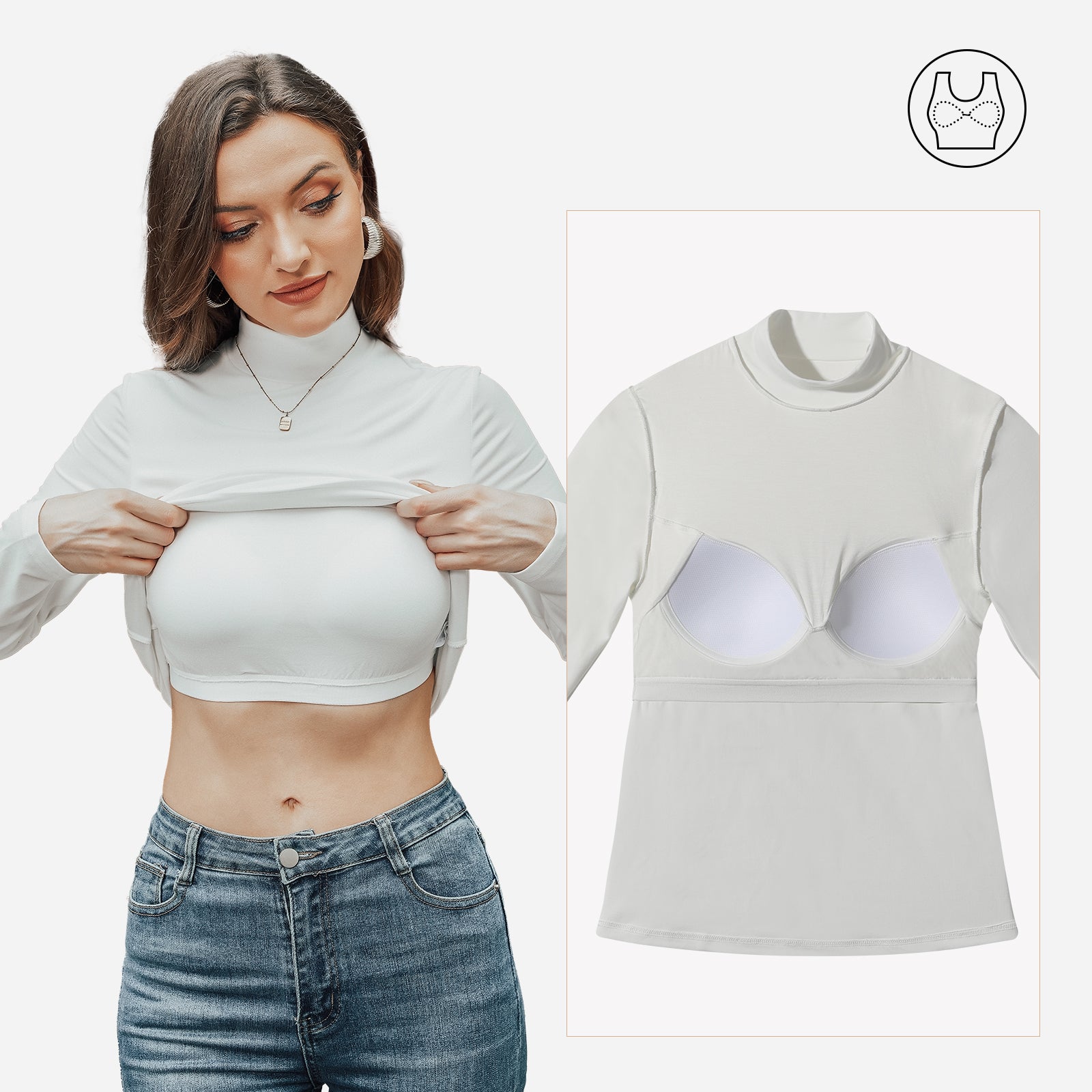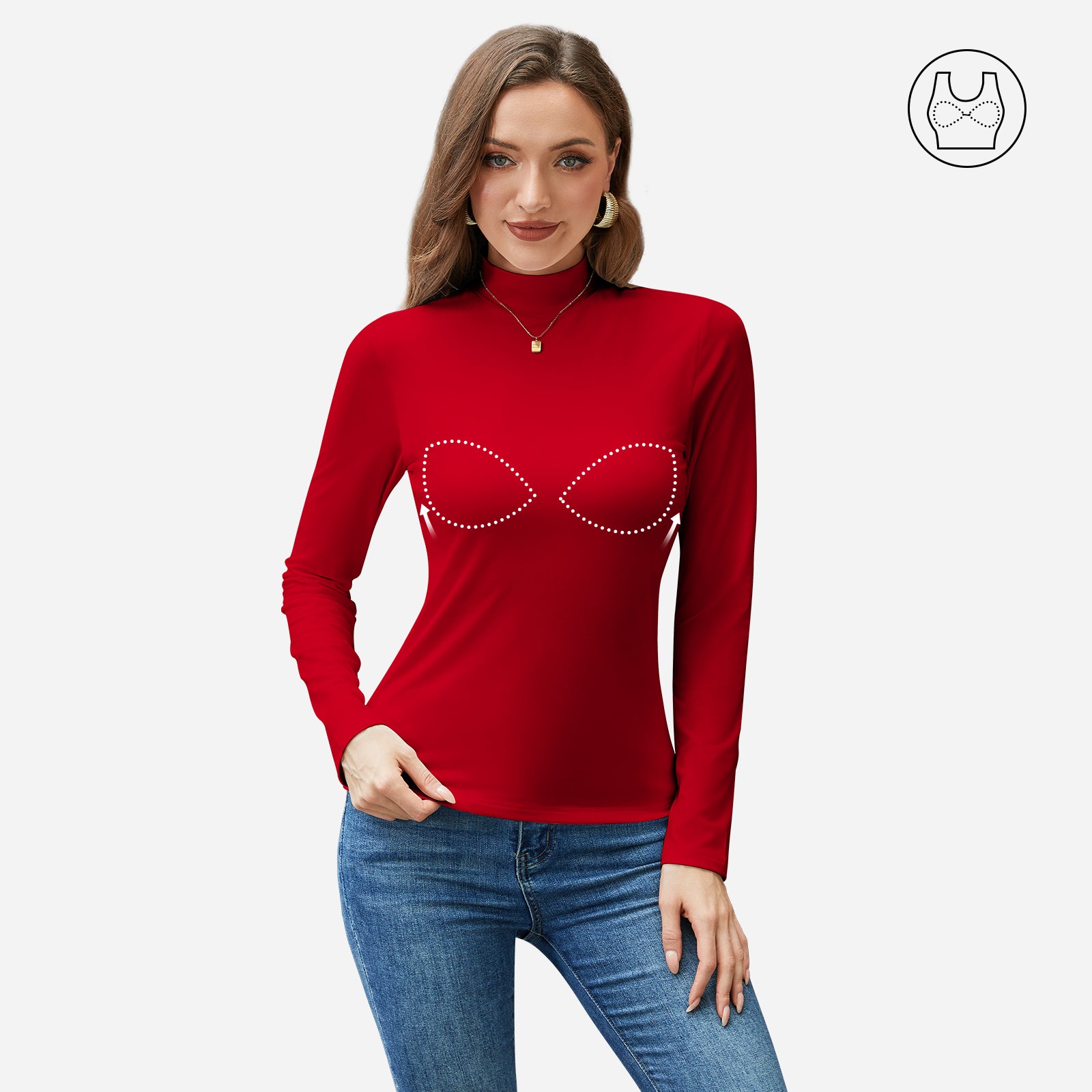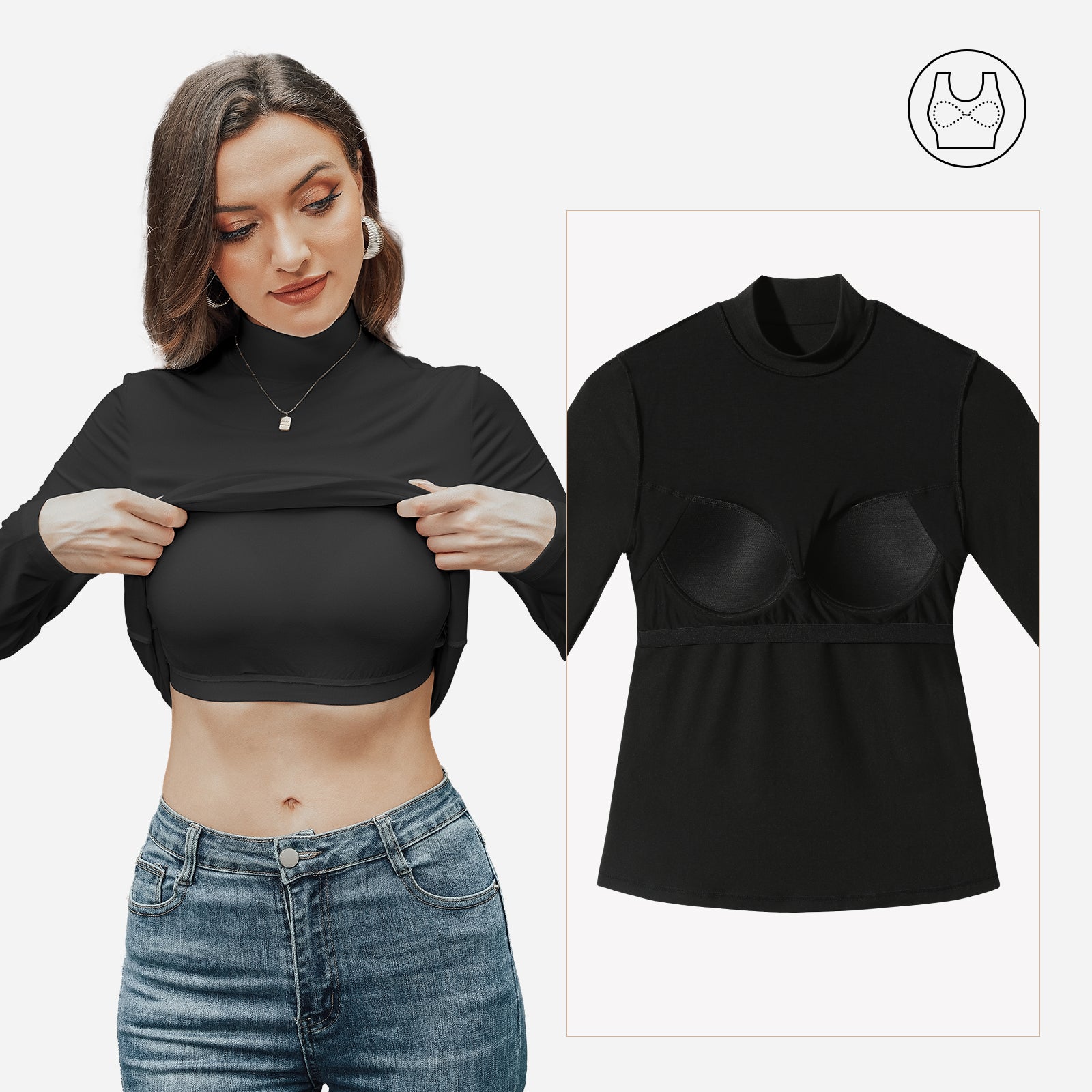 Joyshaper Women's Turtleneck Top Built-in Bra Long Sleeve Casual Tee
