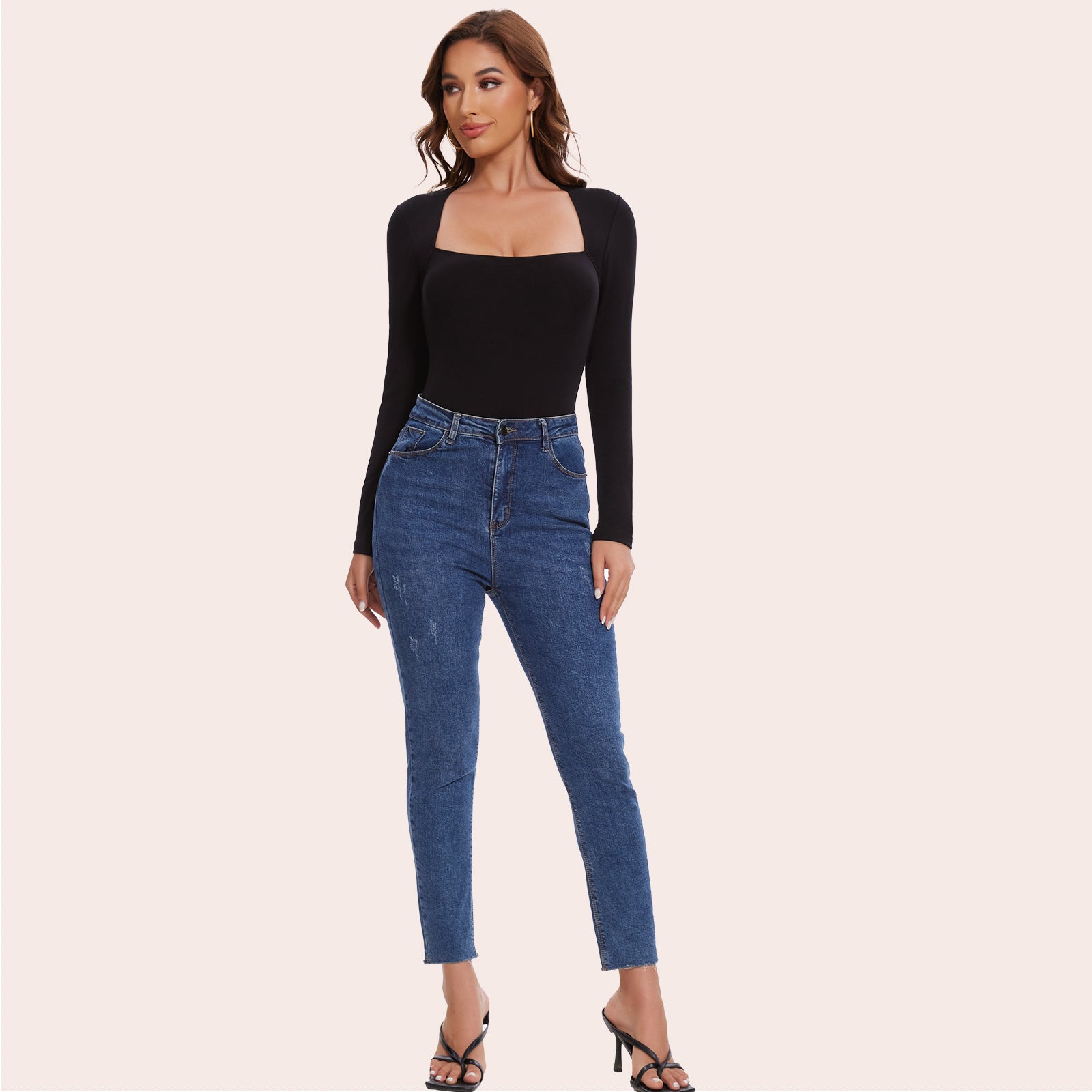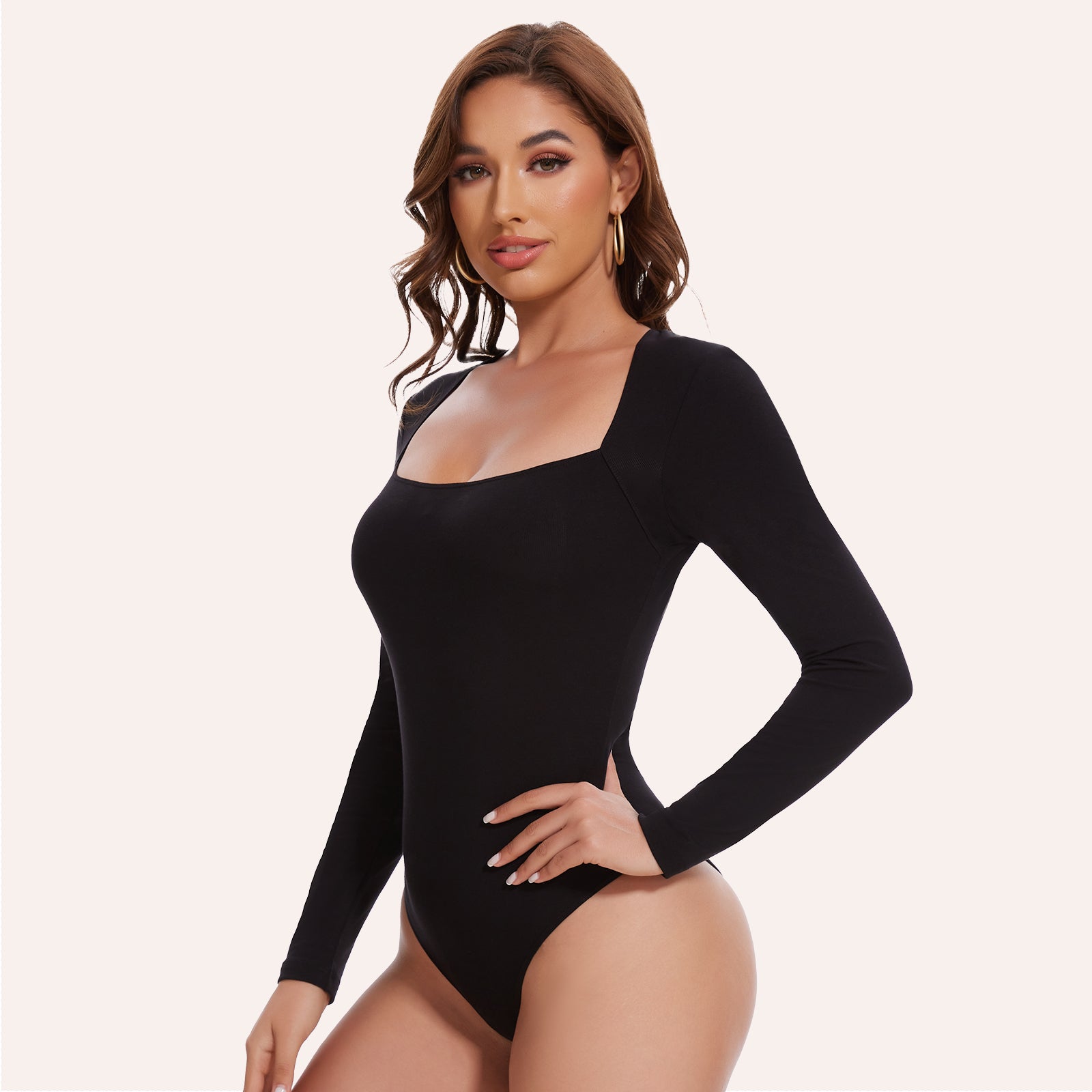 Joyshaper Slim Square Neck Bodysuit Long Sleeve Top