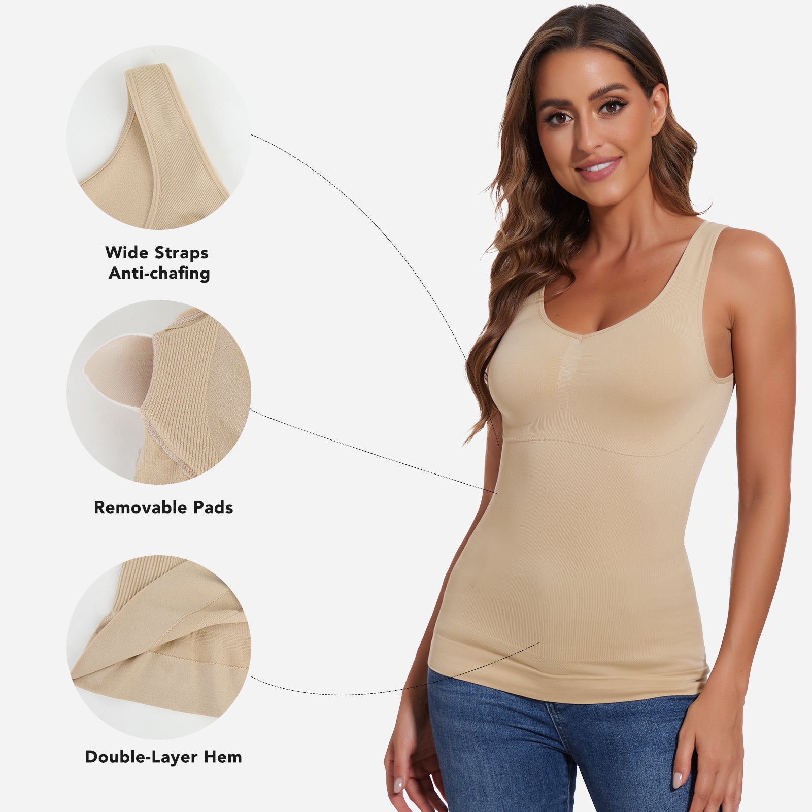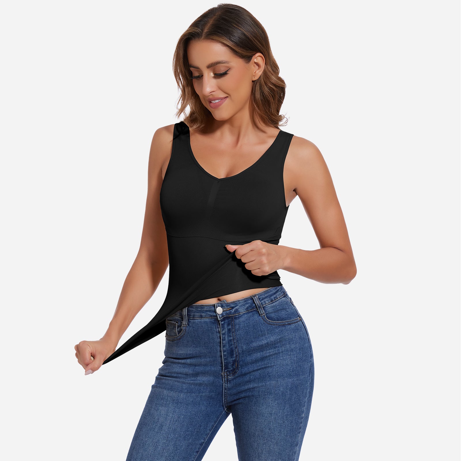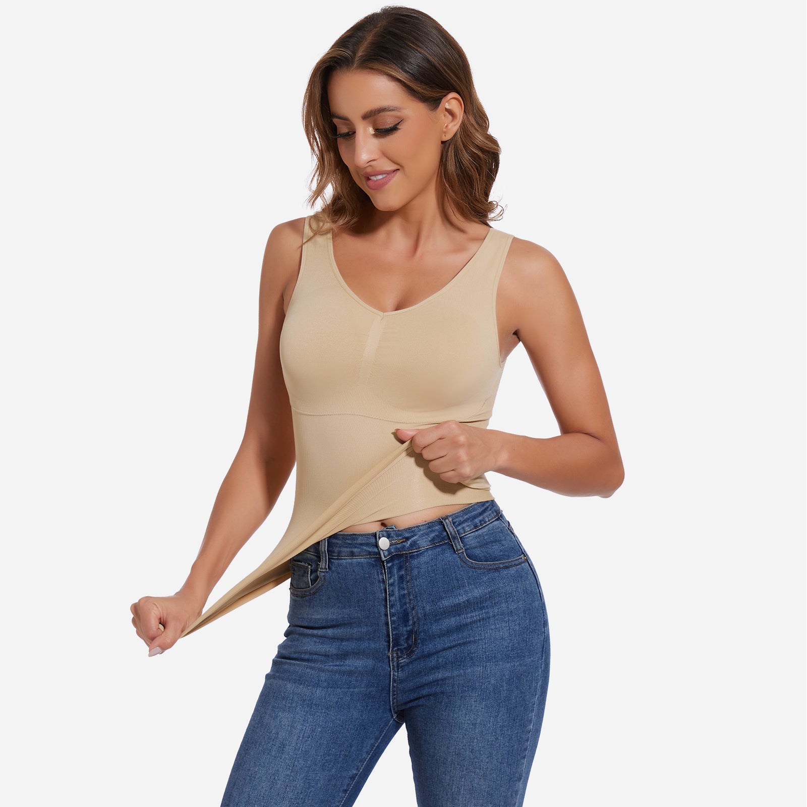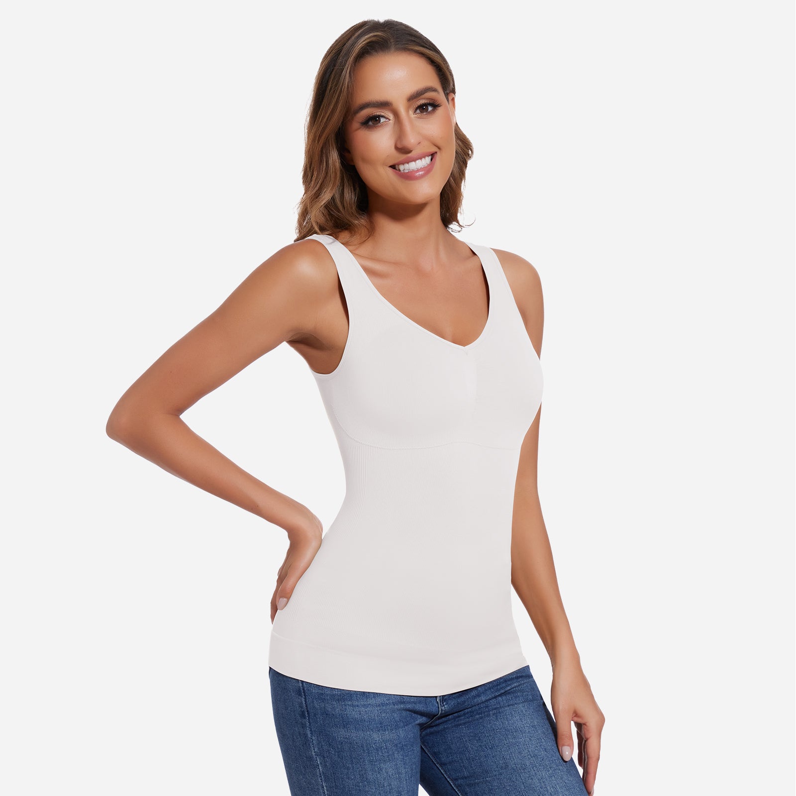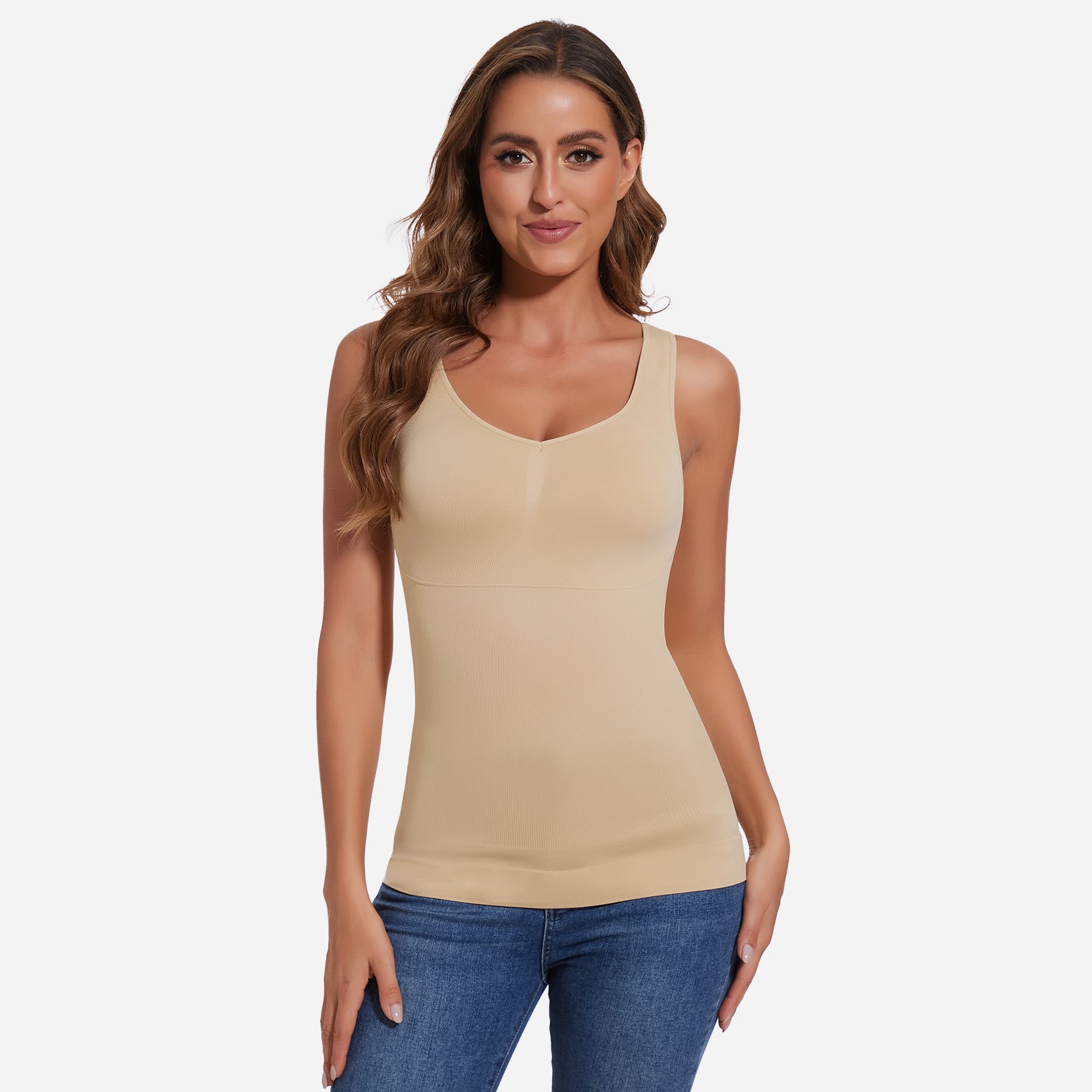 Joyshaper V-Neck Seamless Shapewear Tank With Padded Bra