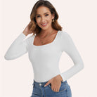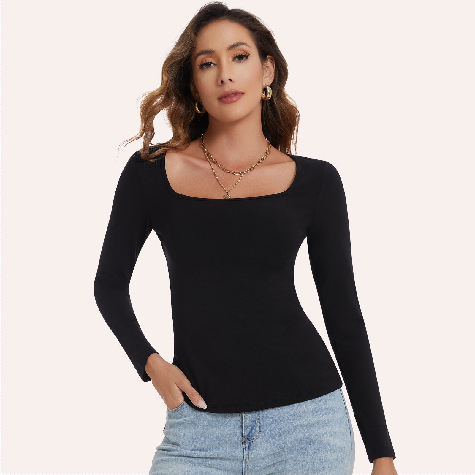 Joyshaper Square Neck T Shirt Slim Fit Long Sleeve Tops Tee