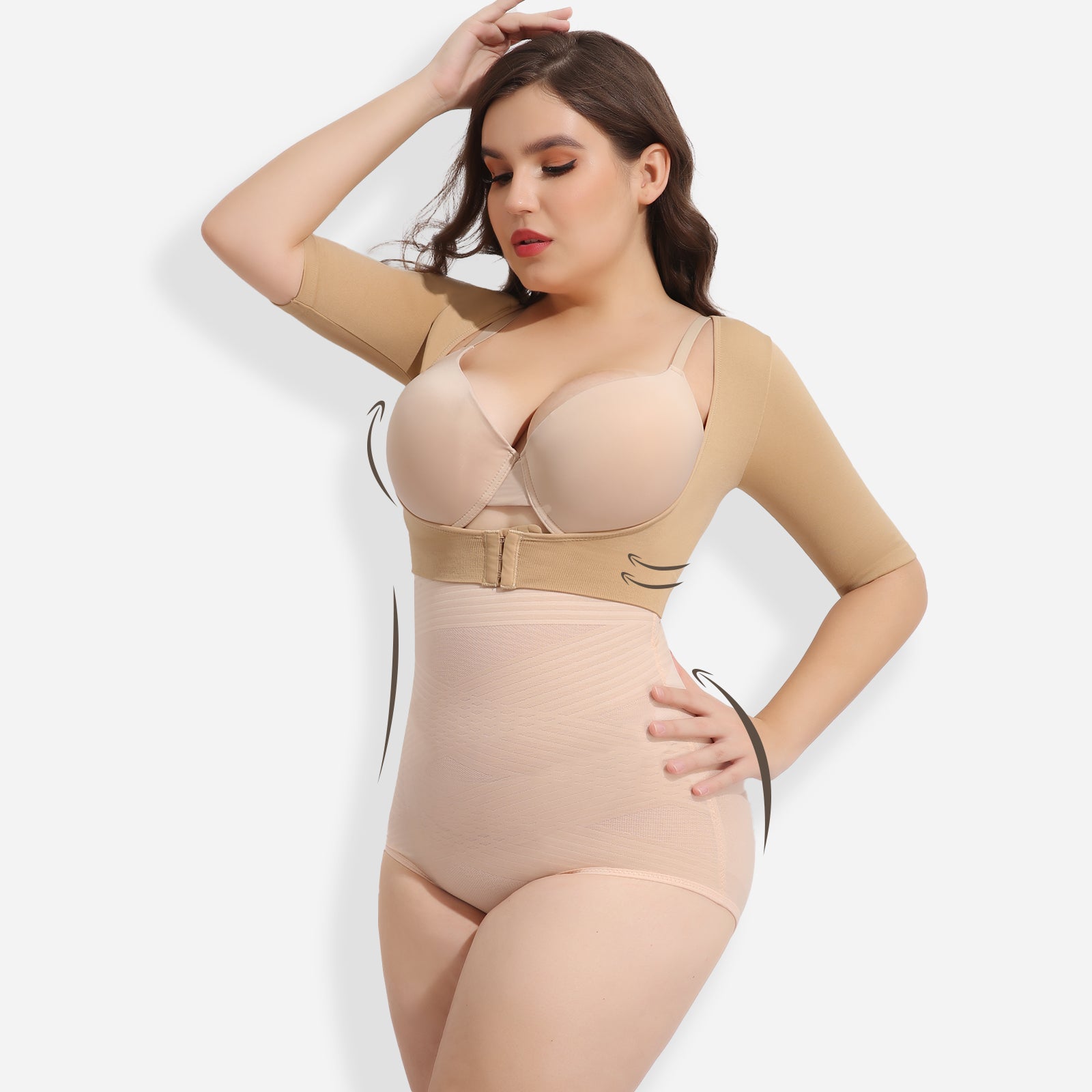 • The slimming arm compression vest with adjustable 3-row hooks, is easy to wear and you can adjust it for a snug fit at all times.